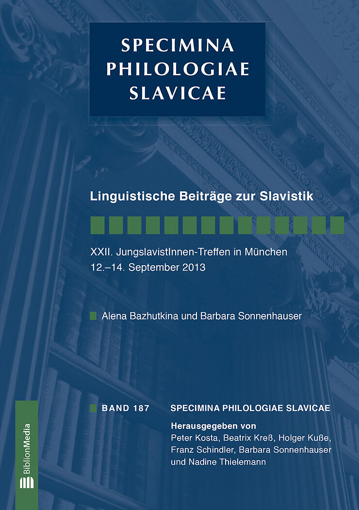 Der vorliegende Sammelband enthält Beiträge der TeilnehmerInnen des XXII. JungslavistInnen-Treffens, das vom 12. bis zum 14. September 2013 am Institut für slavische Philologie der Ludwig-Maximilians-Universität München stattfand. In 13 Beiträgen wurden Arbei...