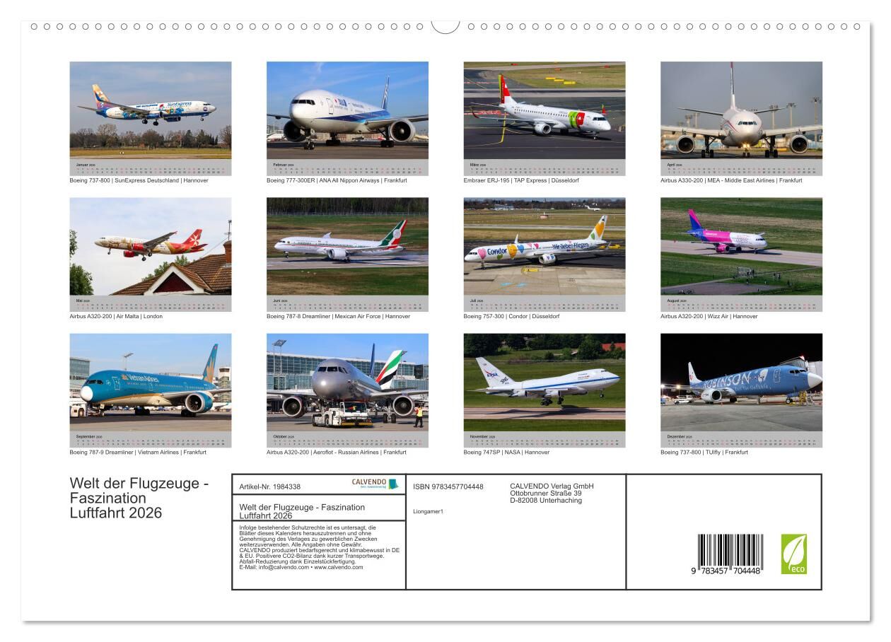 Diesen Kalender möchte kein Flugzeug-Fan missen. Die 12 hochwertigen Farbfotos, die viele unterschiedliche Flugzeugtypen, verschiedener Hersteller, zeigen, wurden größtenteils hautnah an den Flugzeugen, auf dem Vorfeld, aufgenommen.
