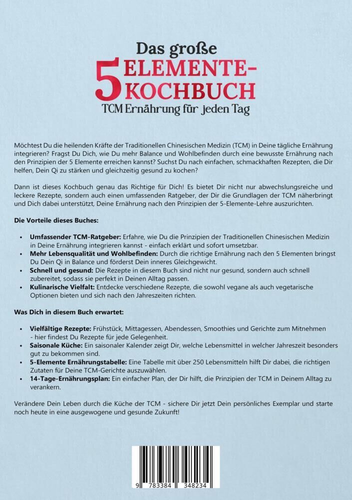 Möchtest Du die heilenden Kräfte der Traditionellen Chinesischen Medizin (TCM) in Deine tägliche Ernährung integrieren? Fragst Du Dich, wie Du mehr Balance und Wohlbefinden durch eine bewusste Ernährung nach den Prinzipien der 5 Elemente erreichen kannst? Such...