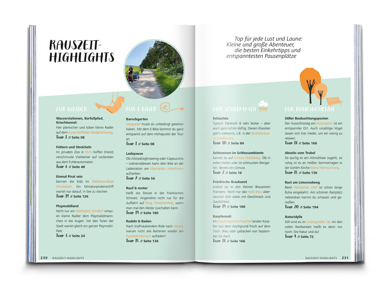 21einhalb Radtouren, die du so nie gemacht hättest! Tagestouren, die jeder schafft, Feierabendrunden zum Runterschalten und Wochenendausflüge ins Umland hier ist für alle die passende Tour dabei. Bei der Tourenauswahl helfen Highlight-Listen für Kinder, E-Bik...