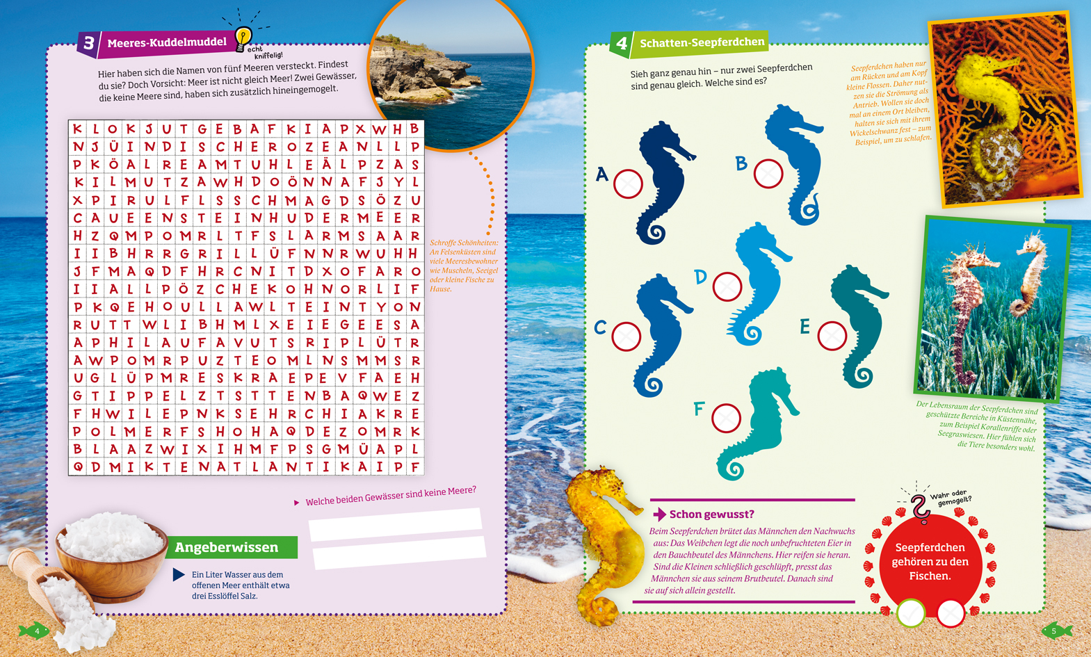 Trotz moderner Technologien geben uns die Meere der Welt noch heute viele Rätsel auf. Beim großen Meeresquiz in diesem Mitmach-Heft ab 8 Jahren ist Experten-Wissen gefragt: Wie viel Prozent der Erdoberfläche sind von Wasser bedeckt? Welches ist das größte Meer...
