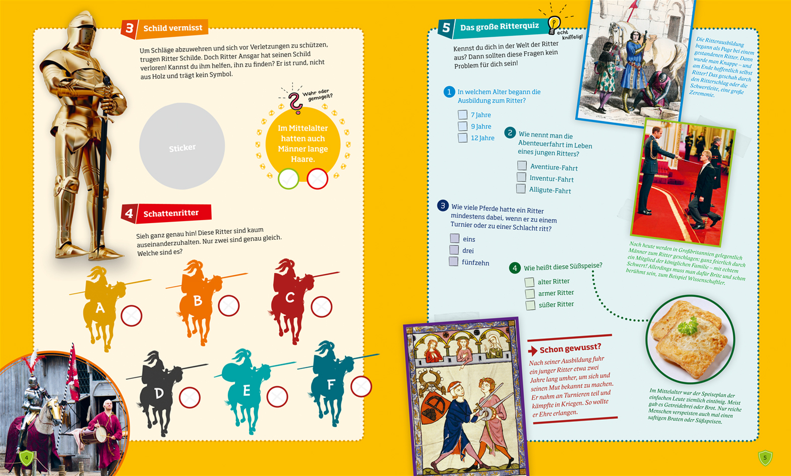 Ritter Ansgar den richtigen Schild "hinstickern", den Fehlern im Suchbild auf die Schliche kommen und wichtige Fähigkeiten eines Ritters in der Buchstabenschlange finden - die WAS IST WAS Rätsel- und Stickerhefte bieten neben unterhaltsamen Aufgaben auch spann...