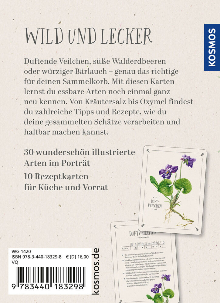 Auf 40 handlichen und wunderschön gestalteten Karten verbindet dieses einzigartige Set die Trend-Ästhetik Cottagecore mit dem einfachen Erkennen essbarer Pflanzen. Neben kurzen Artporträts und stimmungsvollen Illustrationen finden sich auf den Karten auch krea...