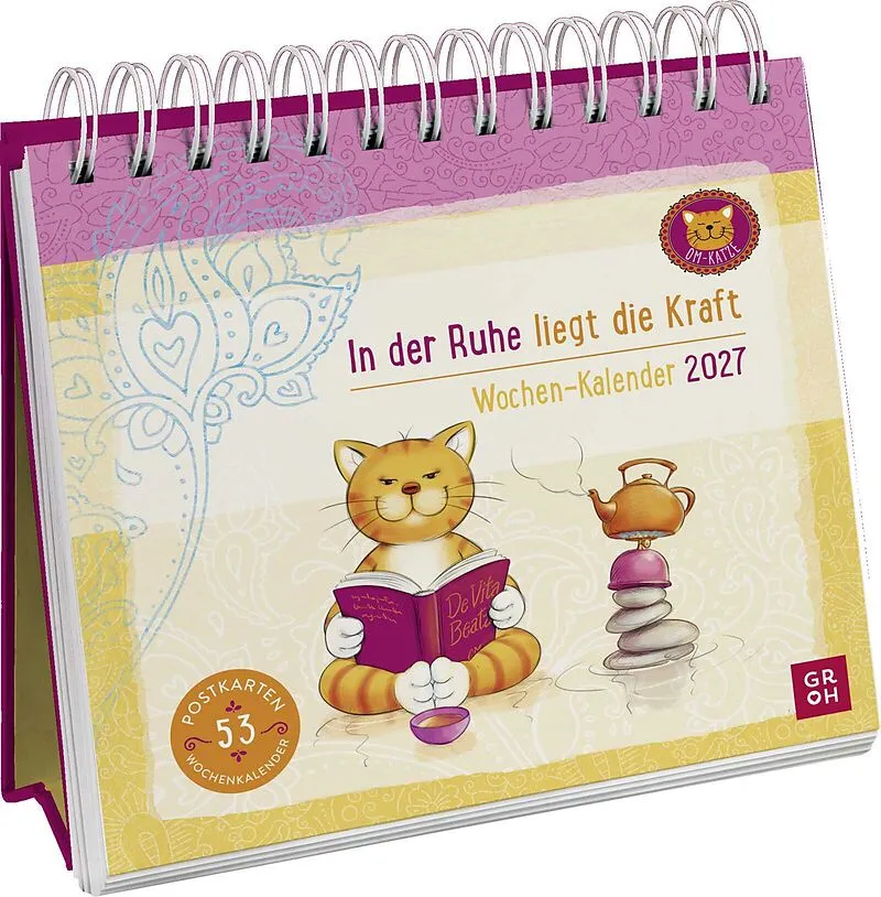 Toller Postkartenkalender 2027 für mehr Achtsamkeit mit der niedlichen Om-Katze Postkartenkalender 2027 mit lustigen Illustrationen der Om-Katze von Lisa Manneh Tischkalender mit Wochenkalendarium, Angabe der Kalenderwochen und Feiertage, mit Jahresübersicht ...