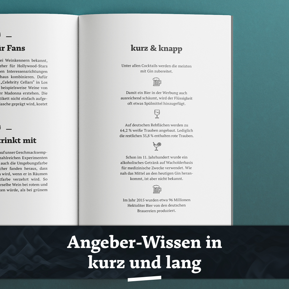 Schon gewusst? Rund 93.000 Liter Bier bleiben jährlich in britischen Bärten hängen. Pro Jahr sterben mehr Menschen durch Sektkorken als durch Spinnenbisse. Es gibt Gin mit der Geschmacksnote Golfschläger. Staune über die verblüffenden Geschichten zu den belie...
