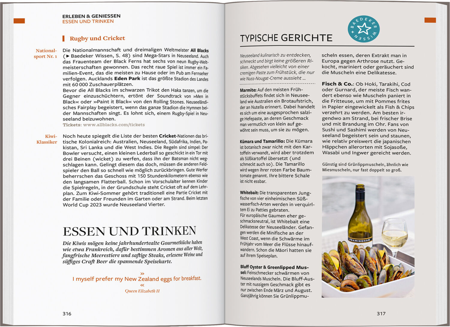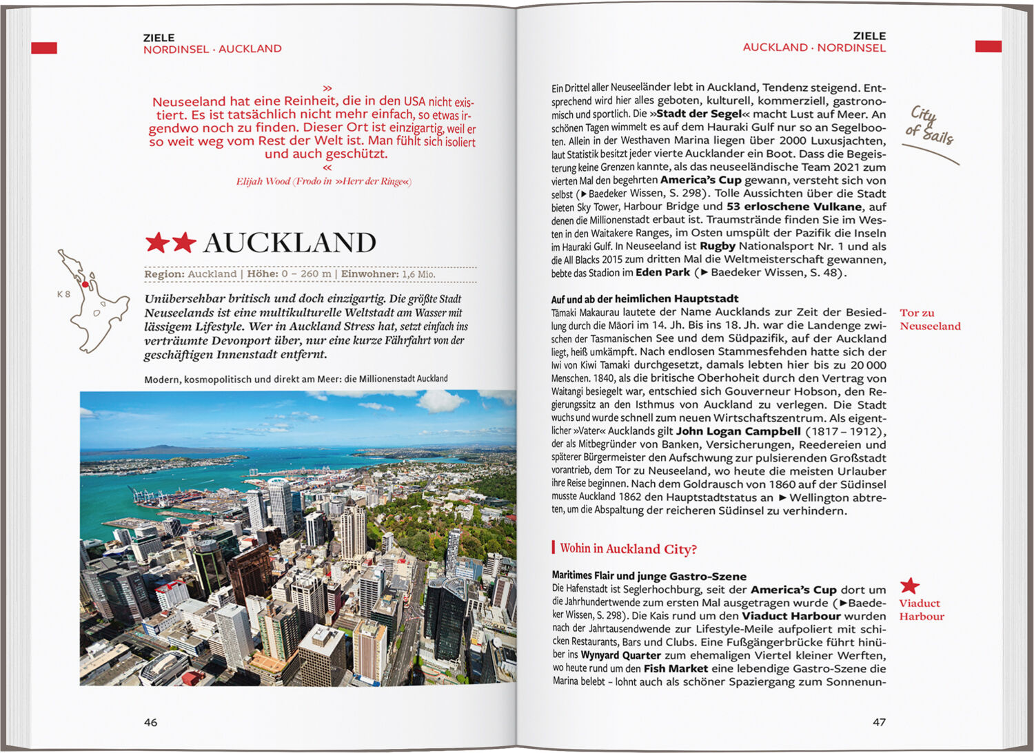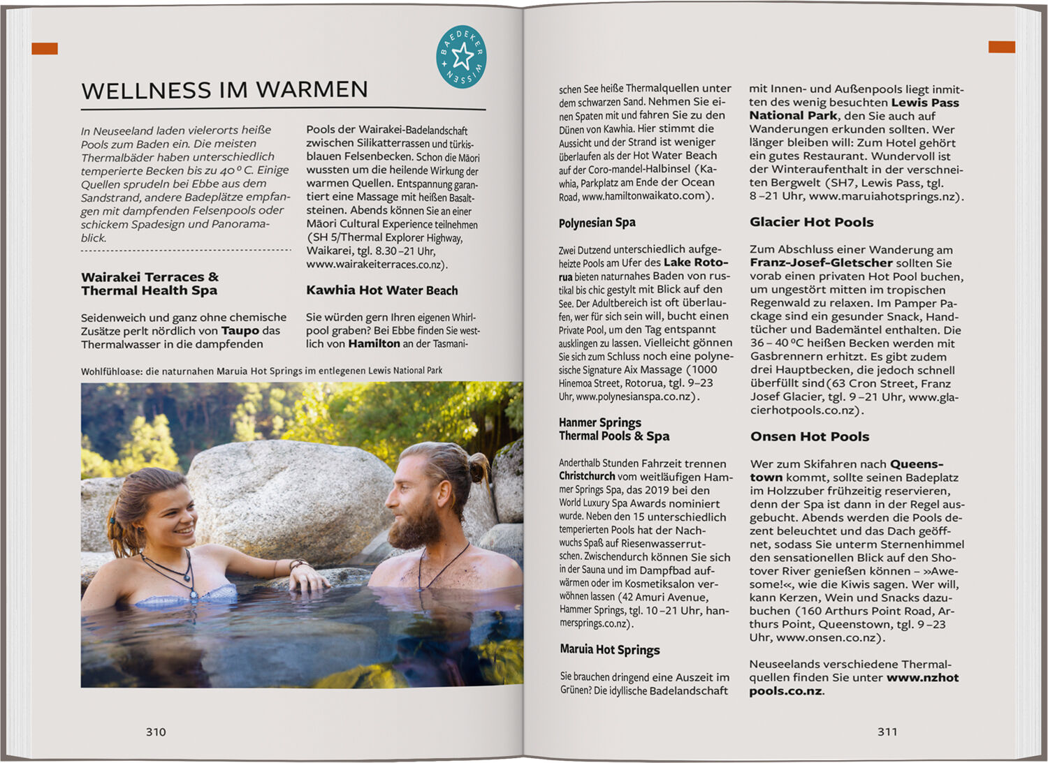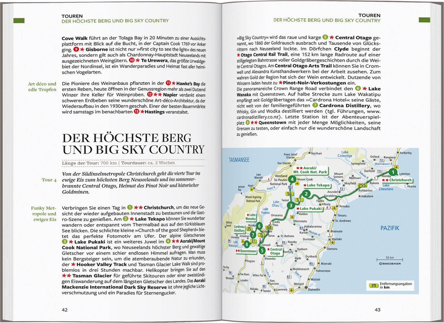 Unberührte Natur, traumhafte Strände und beeindruckende Großstädte unser Reiseführer Neuseeland begleitet Sie durch eines der schönsten Länder dieser Welt. In vier individuellen Tourenvorschlägen lassen wir Sie zwischen der großen Hafenstadt Auckland und der ...Unberührte Natur, traumhafte Strände und beeindruckende Großstädte unser Reiseführer Neuseeland begleitet Sie durch eines der schönsten Länder dieser Welt. In vier individuellen Tourenvorschlägen lassen wir Sie zwischen der großen Hafenstadt Auckland und der lebendigen Hauptstadt Wellington einen lässigen Lifestyle entdecken, bringen Sie zu einem der zahlreichen wunderschönen Strände, führen Sie nach Hobbiton , der weltberühmten Filmkulisse von »Herr der Ringe«, zeigen Ihnen die einzigartig funkelnde Glühwürmchen-Höhle Waitomo Caves und wandern zum Schluss alpines Vulkangelände entlang. Erleben Sie auf der Südhälfte der Insel den majestätischen Gletschersee Lake Pukaki, das größte türkisfarbene Juwel am Aoraki dem höchsten Berg Neuseelands. Unsere Reisetipps verraten, wo Sie das Außergewöhnliche entdecken, einsame Fjorde erkunden und atemberaubendes Whale Watching erleben können damit Ihre Reise nach Neuseeland einfach unvergesslich wird.