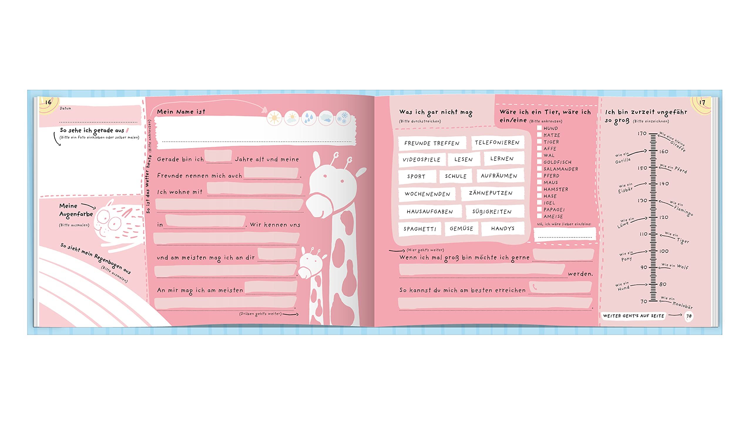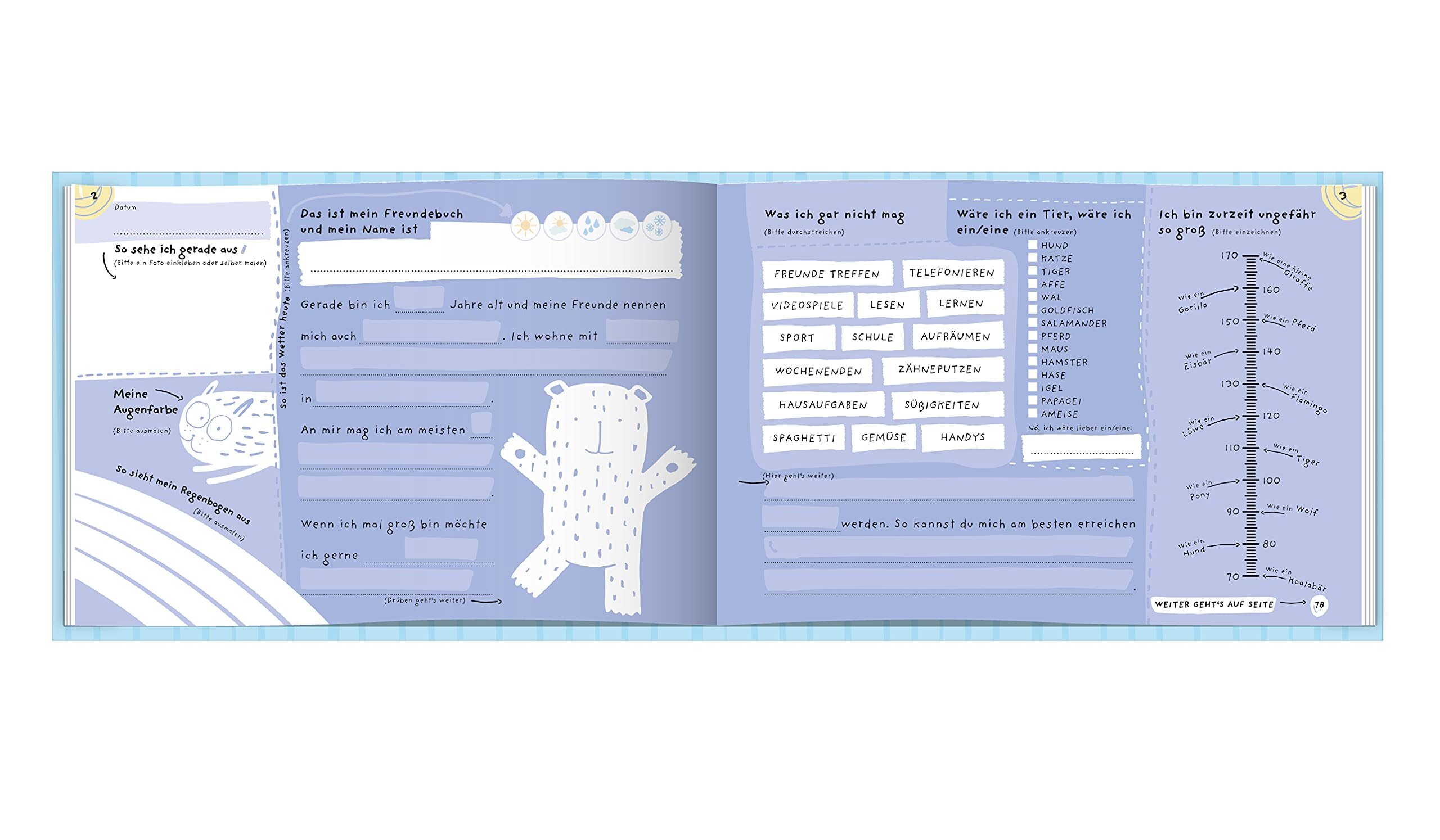 Mit dem lustigen und von Hand liebevoll illustrierten Freundebuch kannst du dich immer wieder an deine Freunde aus Kindergarten und Schule erinnern. Das Freundebuch, Poesiealbum hat 84 feste, stabile Seiten, damit sich alle Freunde und Familienmitglieder verew...