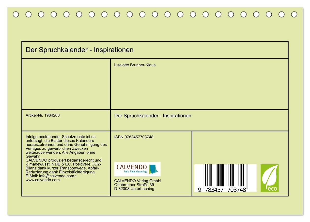 Der Spruchkalender - Inspirationen (Tischkalender 2026 DIN A5 quer), CALVENDO Monatskalender