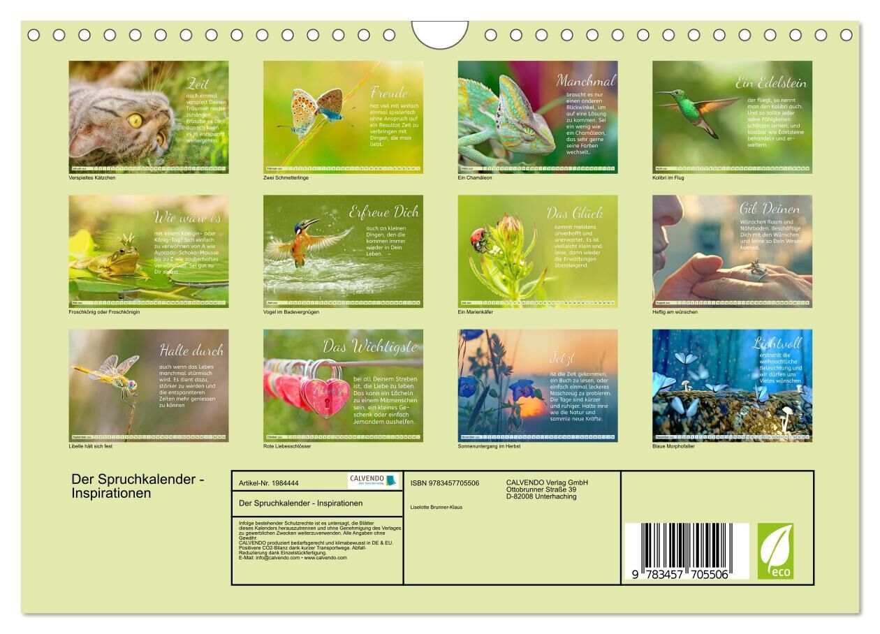 Der Spruchkalender - Inspirationen (Wandkalender 2026 DIN A4 quer), CALVENDO Monatskalender
