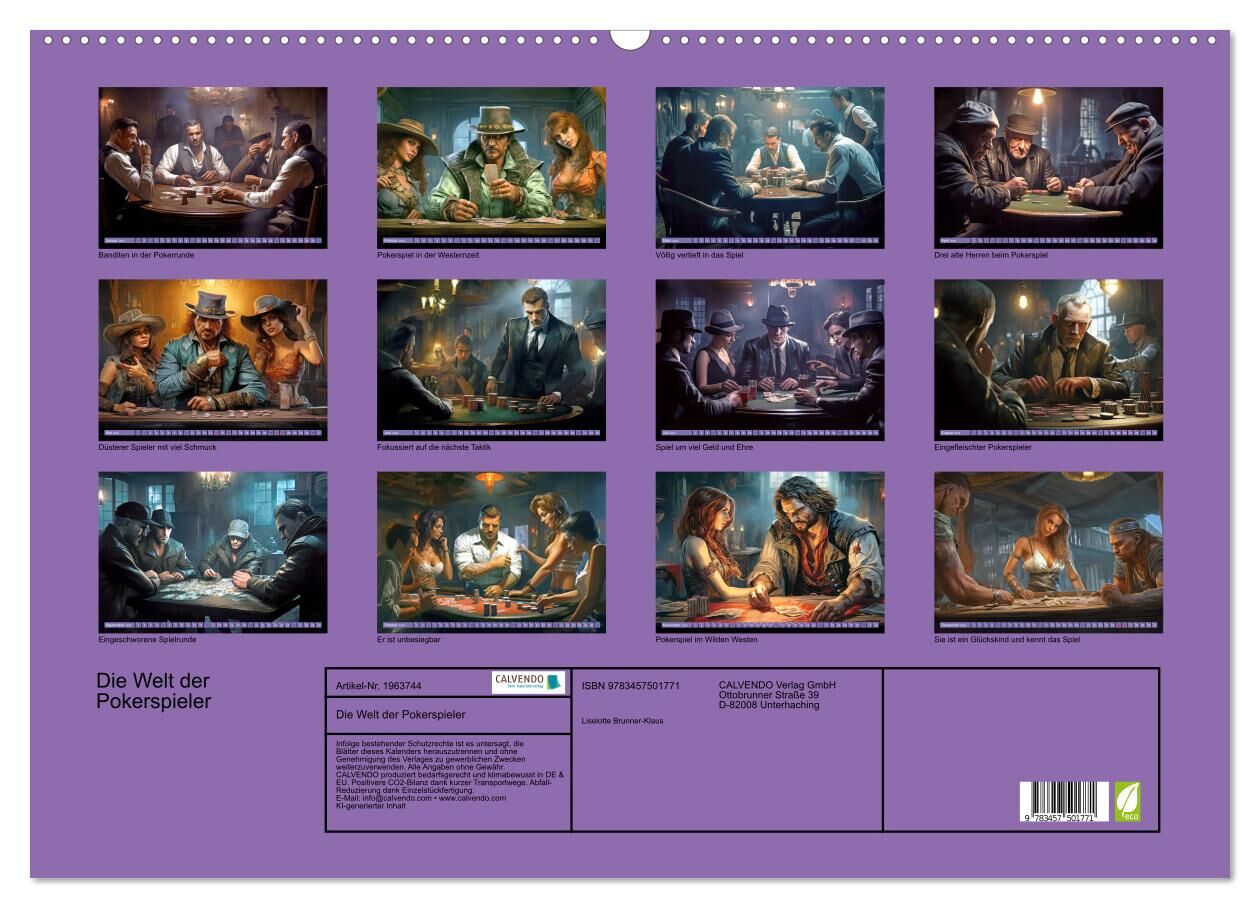 Tauchen Sie in die faszinierende Welt der Pokerspieler ein mit unserem Kalender mit dem Titel Die Welt der Pokerspieler. Schon lange fasziniert eine geheimnisvolle Aura, die die Pokerszene umgibt. Die bekannteste Variante, nämlich Texas Hold'em begann sich in ...