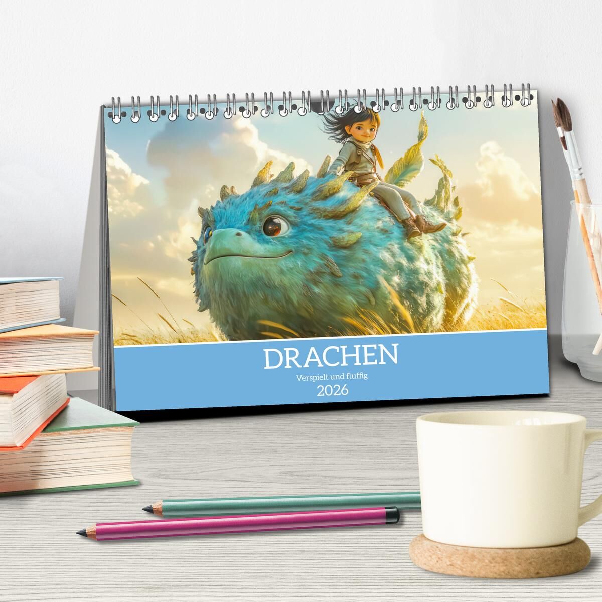 Drachen - Verspielt und fluffig (Tischkalender 2026 DIN A5 quer), CALVENDO Monatskalender
