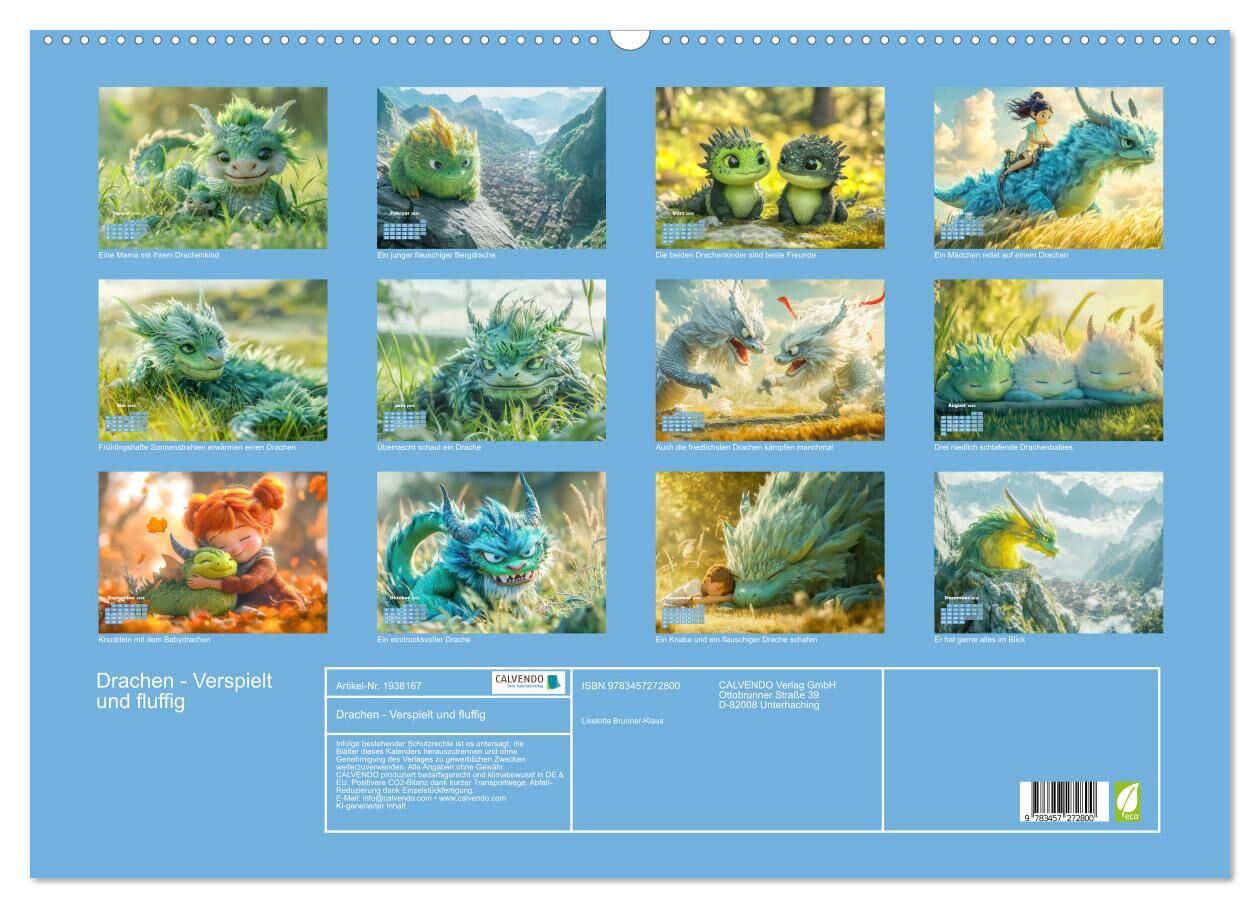 Drachen - Verspielt und fluffig (Wandkalender 2026 DIN A2 quer), CALVENDO Monatskalender