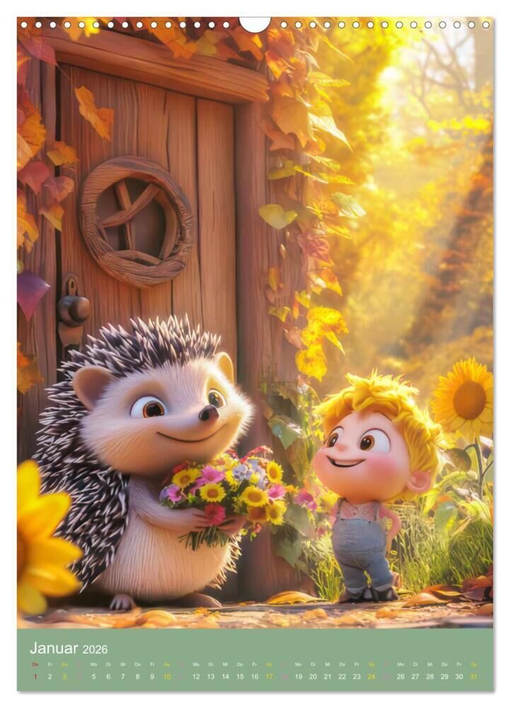 Diese liebevoll gestaltete Sammlung von KI-generierten Kunstwerken von fröhlichen Tieren entführt Sie in eine bunte Welt voller Fantasie und Freude. Lassen Sie sich von den herzerwärmenden Szenen verzaubern. Ein kleiner Junge, der einem Igel Blumen schenkt, ei...