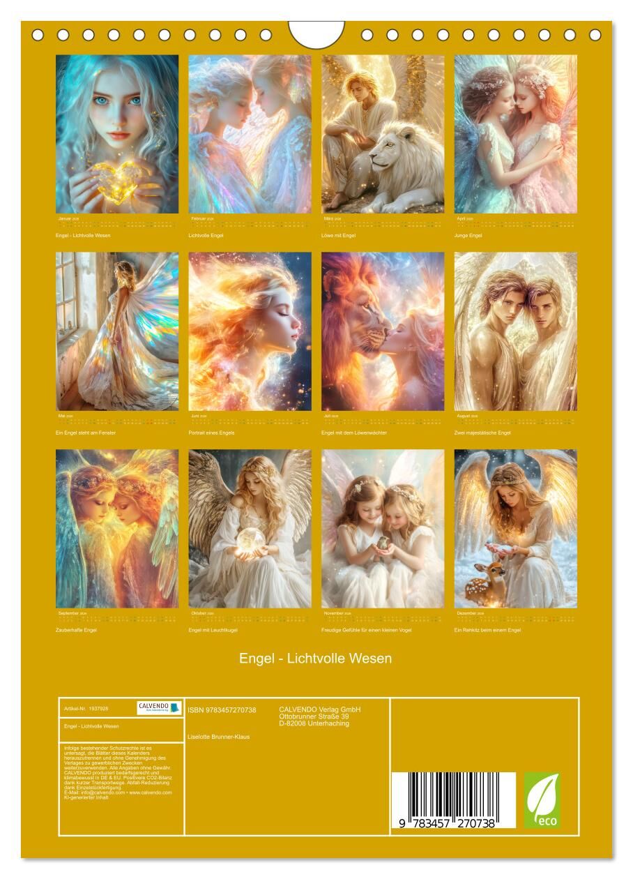 Engel - Lichtvolle Wesen (Wandkalender 2026 DIN A4 hoch), CALVENDO Monatskalender