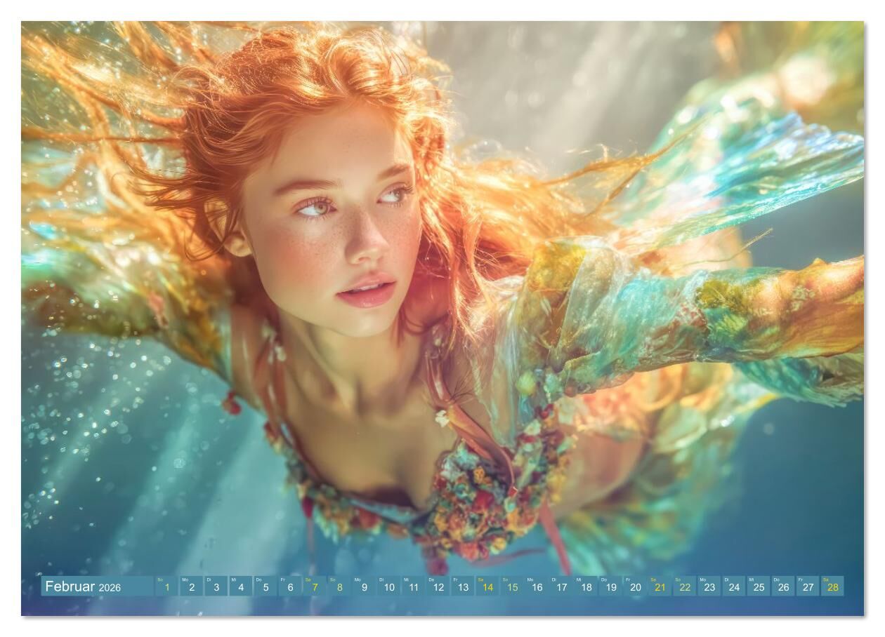 Glamouröse Meerjungfrauen - Fabelwesen (hochwertiger Premium Wandkalender 2026 DIN A2 quer), Kunstdruck in Hochglanz