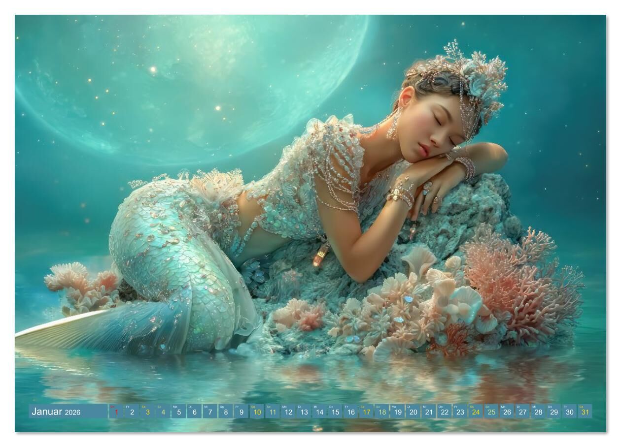 Glamouröse Meerjungfrauen - Fabelwesen (Wandkalender 2026 DIN A4 quer), CALVENDO Monatskalender