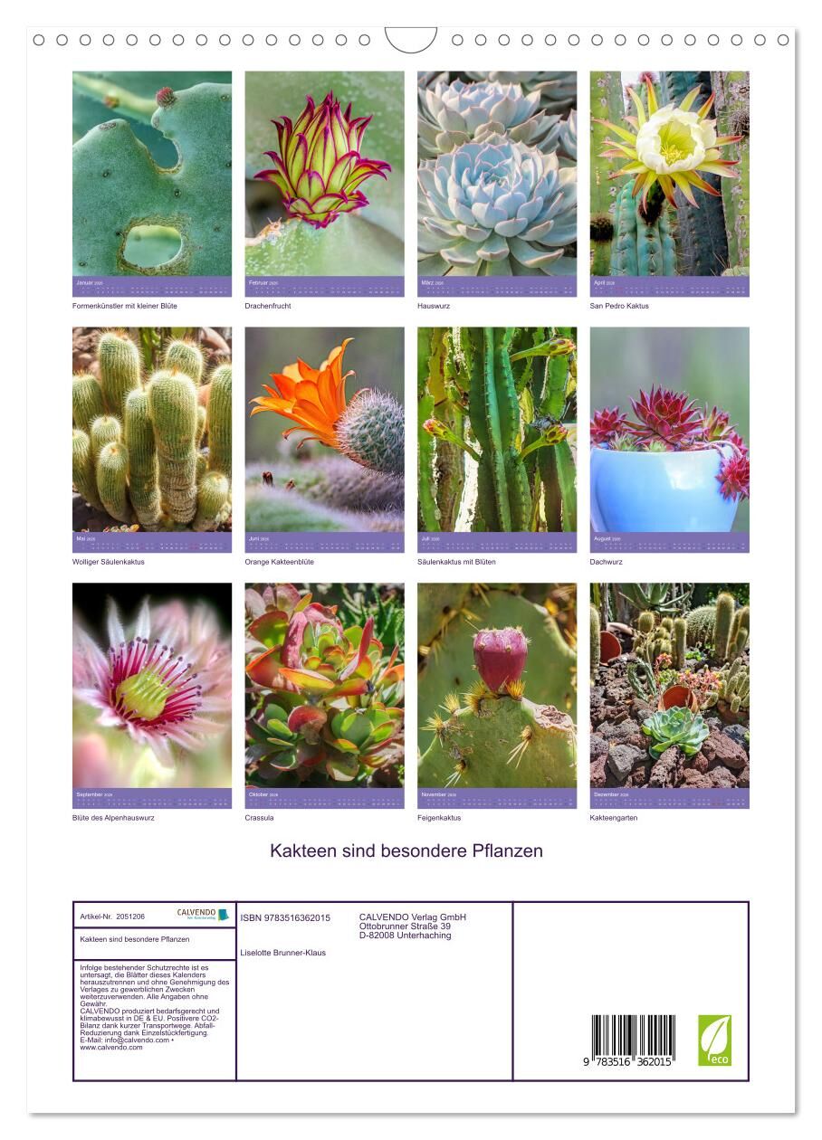 Kakteen sind besondere Pflanzen (Wandkalender 2026 DIN A3 hoch), CALVENDO Monatskalender