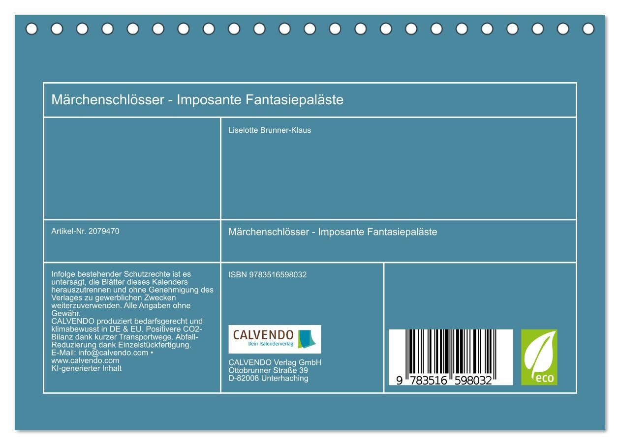Märchenschlösser - Imposante Fantasiepaläste (Tischkalender 2026 DIN A5 quer), CALVENDO Monatskalender