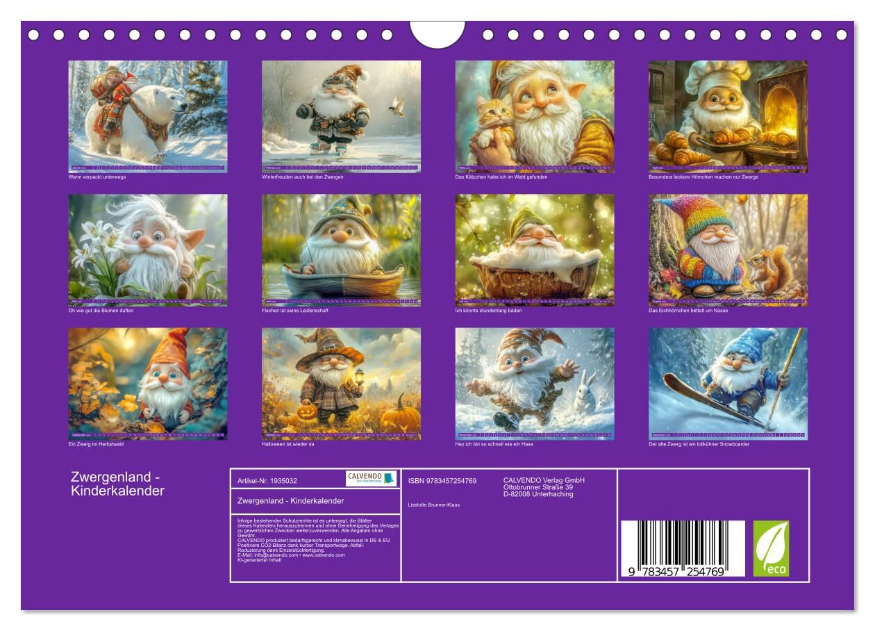 Zwergenland - Kinderkalender (Wandkalender 2026 DIN A4 quer), CALVENDO Monatskalender