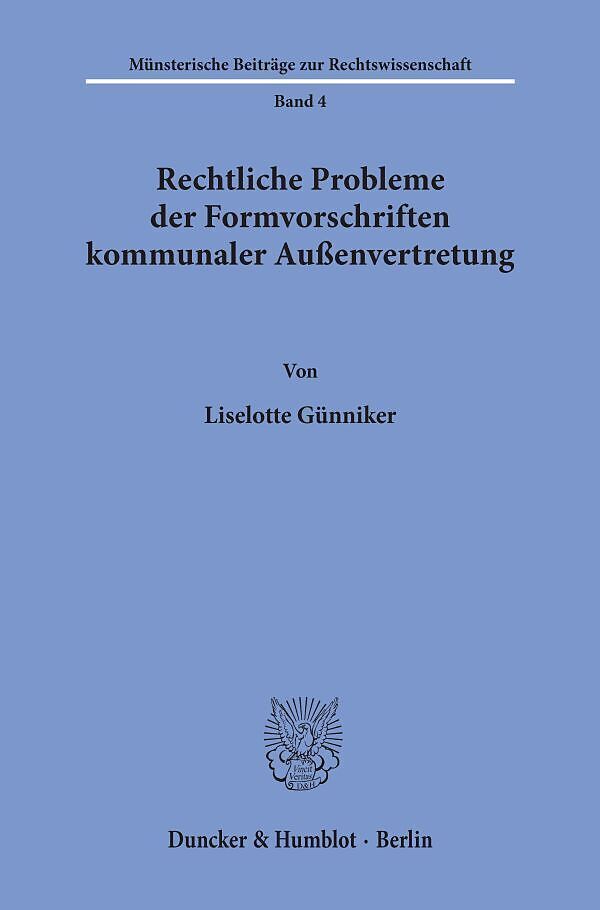 Rechtliche Probleme der Formvorschriften kommunaler Außenvertretung.