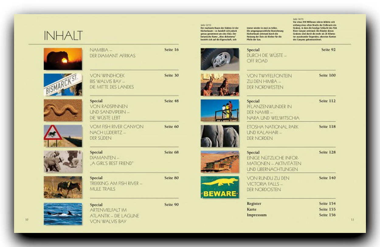 Endlose Wüste, schroffe Felsen und atemberaubende Schluchten, die schwarzen Silhouetten der Köcherbäume, die Sanddünen am Sossusvlei im Rot des Sonnenuntergangs Namibia beeindruckt durch seine Landschaften und Naturwunder. Bauliche Spuren der Kolonialzeit find...
