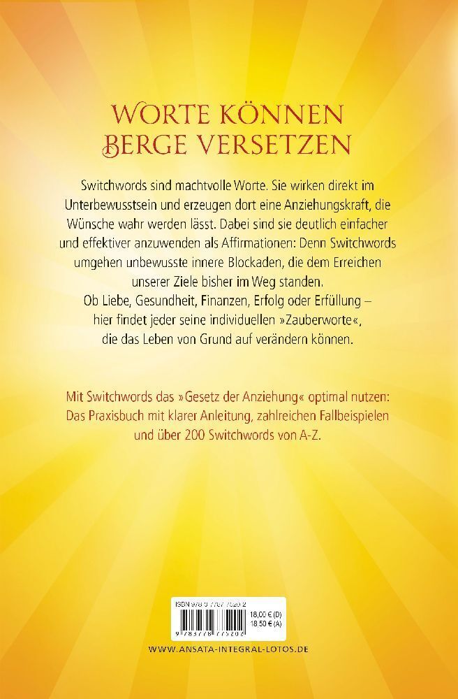 Switchwords sind machtvolle Worte. Sie wirken direkt im Unterbewusstsein und erzeugen dort eine Kraft, die Wünsche wahr werden lässt. Dabei sind sie deutlich einfacher und effektiver anzuwenden als Affirmationen: Switchwords umgehen unbewusste innere Blockaden...