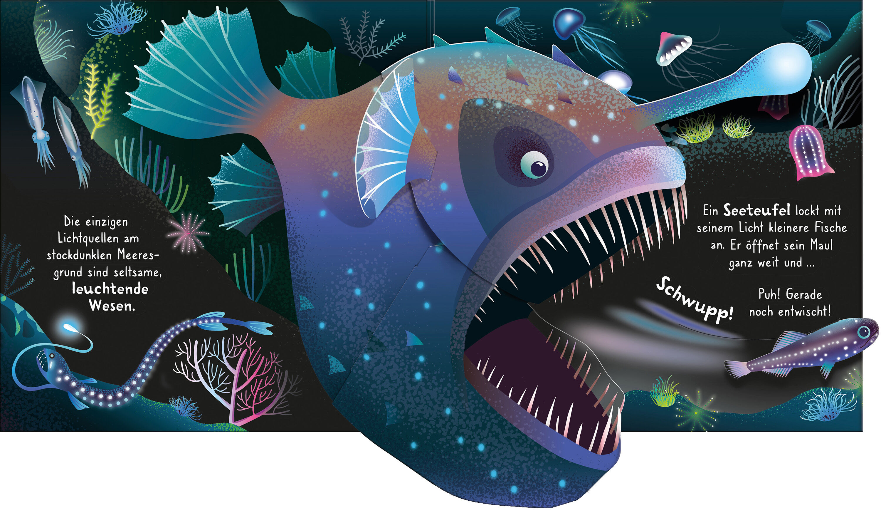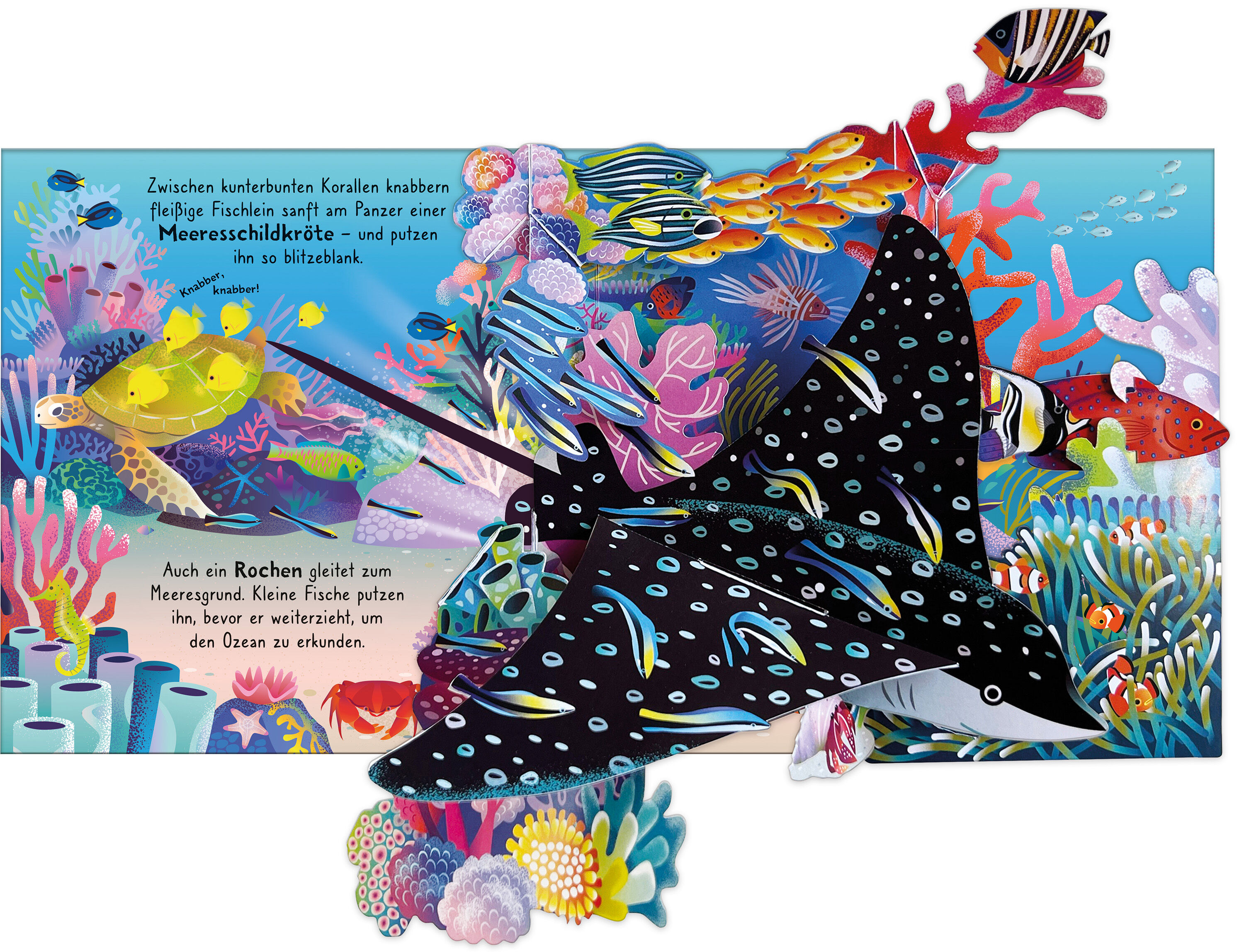 Die Meeresbewohner in 3D Besuche das Zuhause eines Kraken im Seetang, tauche hinab in die stockdunkle Tiefsee und begleite die Blauwal-Dame und ihr Kalb auf ihrer Reise durch den Ozean. Fünf faszinierende Pop-ups laden zum Entdecken und Staunen ein. • Roc...