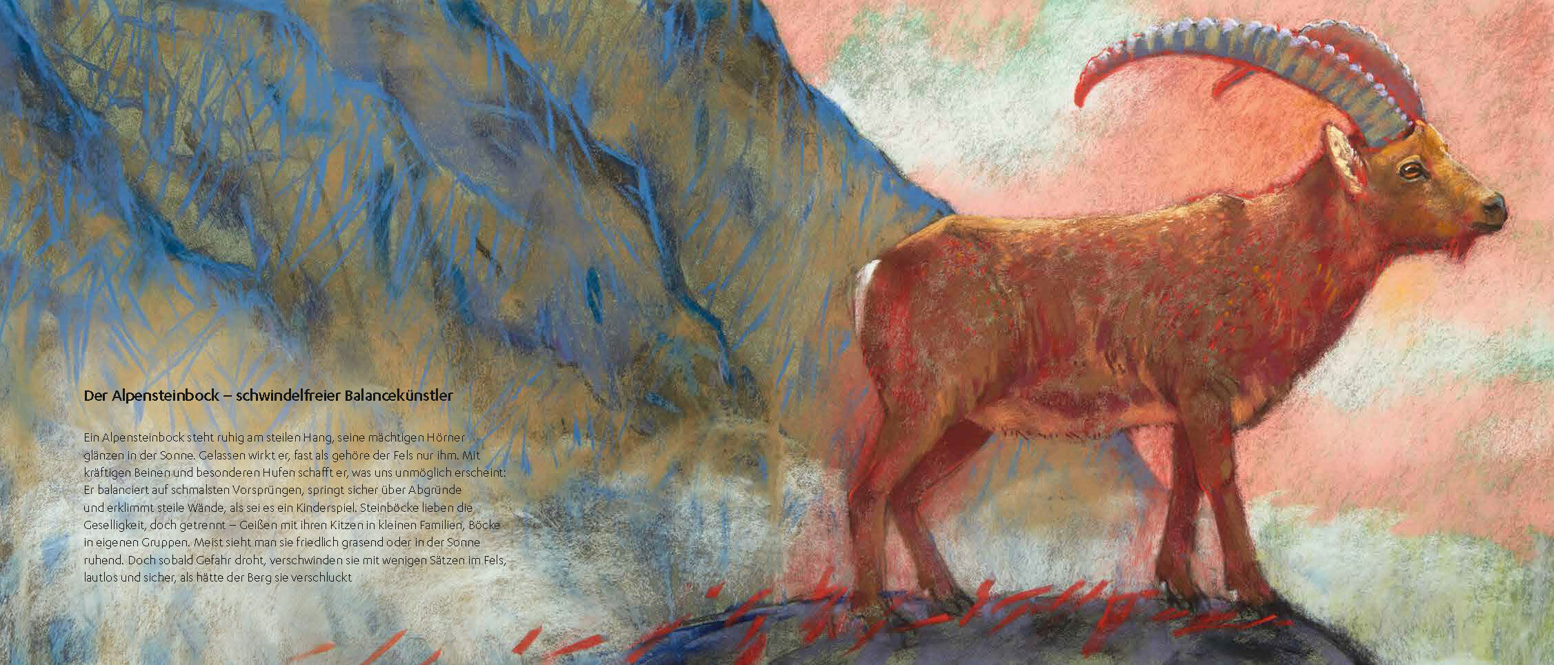 Von eifrigen Wieseln und geschmeidigen Wildkatzen: ein Buch über die Tiere der Berge Wie lange schläft das Murmeltier, was frisst der Wolf? In diesem wunderbaren Tierbuch der Künstlerin Loes Botman verbinden sich detailverliebte Pastellkreide-Bilder mit inform...