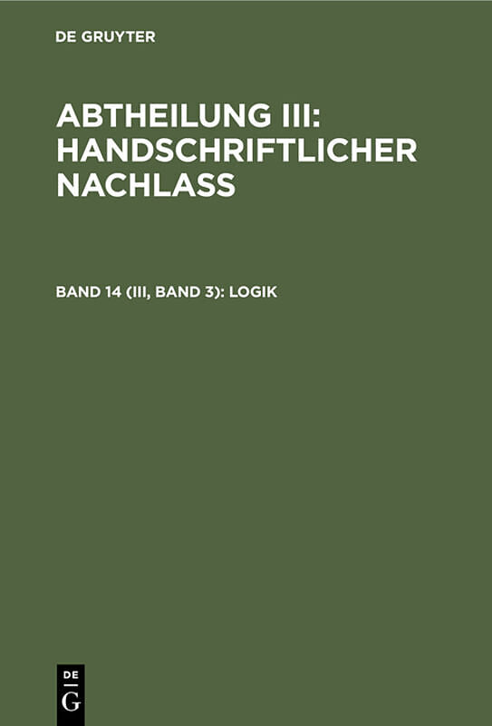 Keine ausführliche Beschreibung für "Logik" verfügbar. Inhalt Frontmatter -- Vorwort -- Inhaltsübersicht des Bandes -- Verzeichniss der Seiten, auf denen der Text von L abgedruckt ist -- Einleitung in die Vernunftlehre -- Begriff, Aufgabe und Einthei...