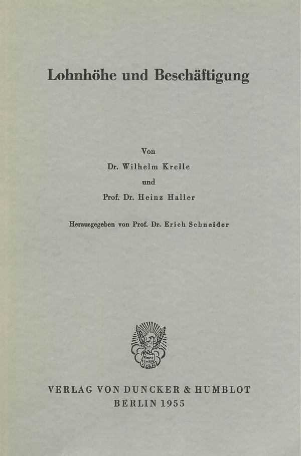 InhaltInhalt: W. Krelle, Der Einfluß von Lohnveränderungen auf Preise und Beschäftigung - H. Haller, Löhne und Beschäftigung