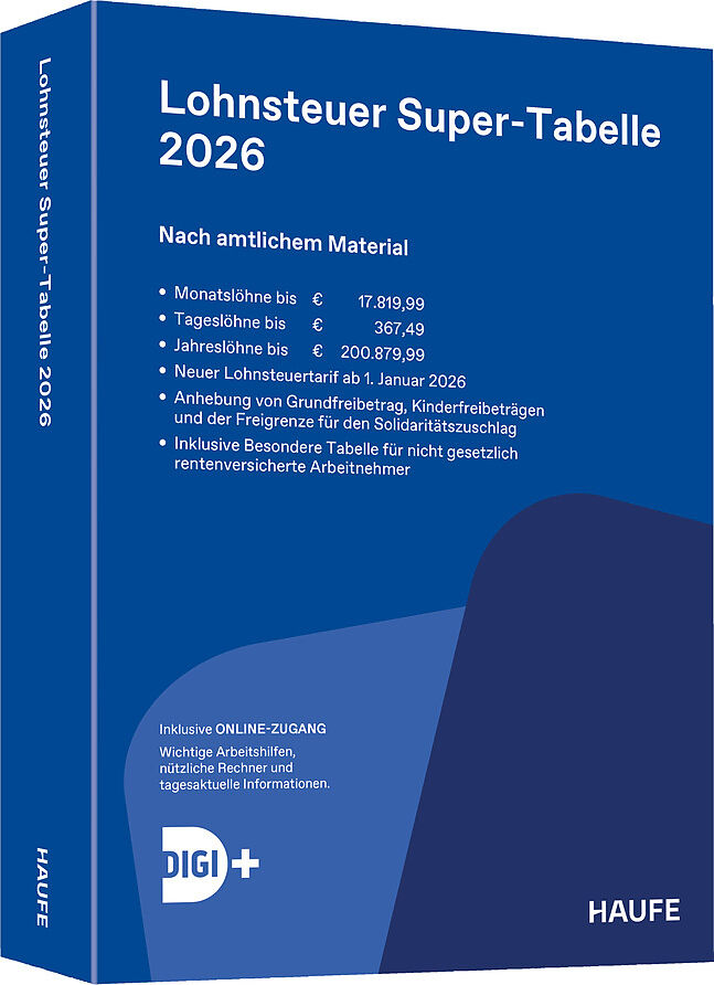 Aktuelle Lohnsteuerwerte, Sozialversicherungswerte, Grundfreibetrag, Kinderfreibetrag, Beitragsbemessungsgrenzen - mit der Lohnsteuer Super-Tabelle 2026 haben Sie alles für eine schnelle und korrekte Lohn- und Gehaltsabrechnung zur Hand. Aktuelle Lohnsteuerta...