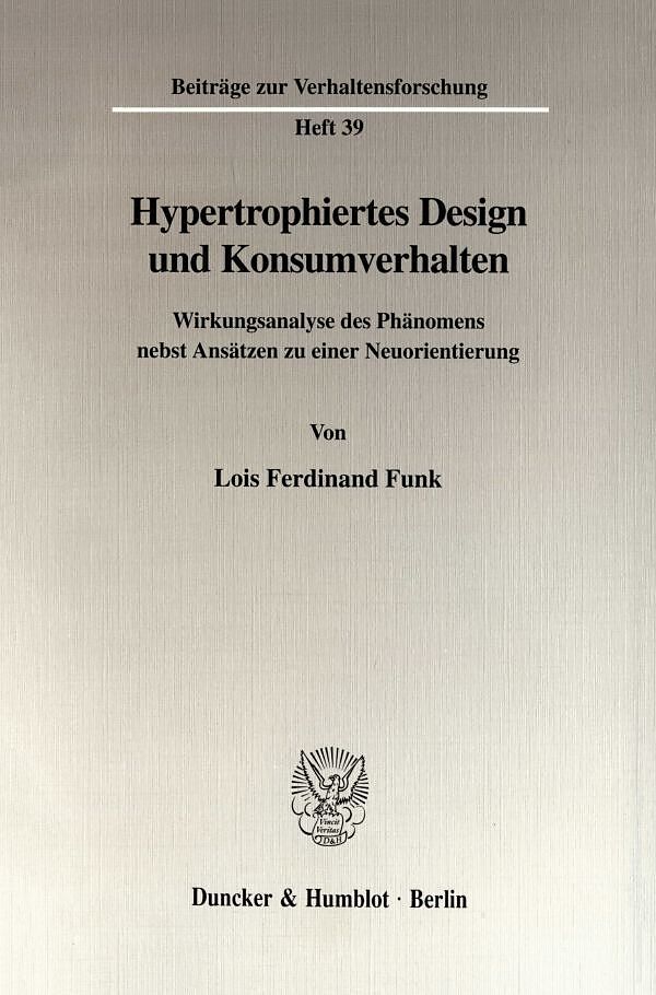 Inhaltsübersicht: A. Einführung: Ziel der Untersuchung - Gang der Untersuchung - B. Begriffsbestimmung: Zur Problematik des Begriffs "Design" - Definitionsfindung und Wesensspezifisches des Konsumgüter-Designs - C. Konkretisierung des Untersuchungsgegenstandes: Die Typologisierung als Designorientierungsmittel - Exkurs: Der formale Freiheitsgrad - Die Hypertrophie des Designs und der hypertrophierte modische Designtyp als Gegenstand der Untersuchung - Dokumentenanalyse: Hypertrophiertes Design im Spiegelbild der Medien - D. Analyse der Wechselbeziehung zwischen Konsument und hypertrophierten Designobjekten: Zur Bedeutung von Objekten für die Persönlichkeitsentwicklung und -struktur des Menschen - Die real-existierende Beziehung zwischen hypertrophierten Designobjekten und dem Konsumenten - Bewertender Vergleich zwischen Ist- und Soll-Zustand - E. Ansätze zu einer Neuorientierung: Kriterien für gutes Design - Neuorientierung auf Konsumentenebene - Neuorientierung auf Unternehmensebene - Neuorientierung auf Designerebene - Neuorientierung auf der Ebene der Designinstitutionen - F. Zusammenfassung - Anhang - Literaturverzeichnis