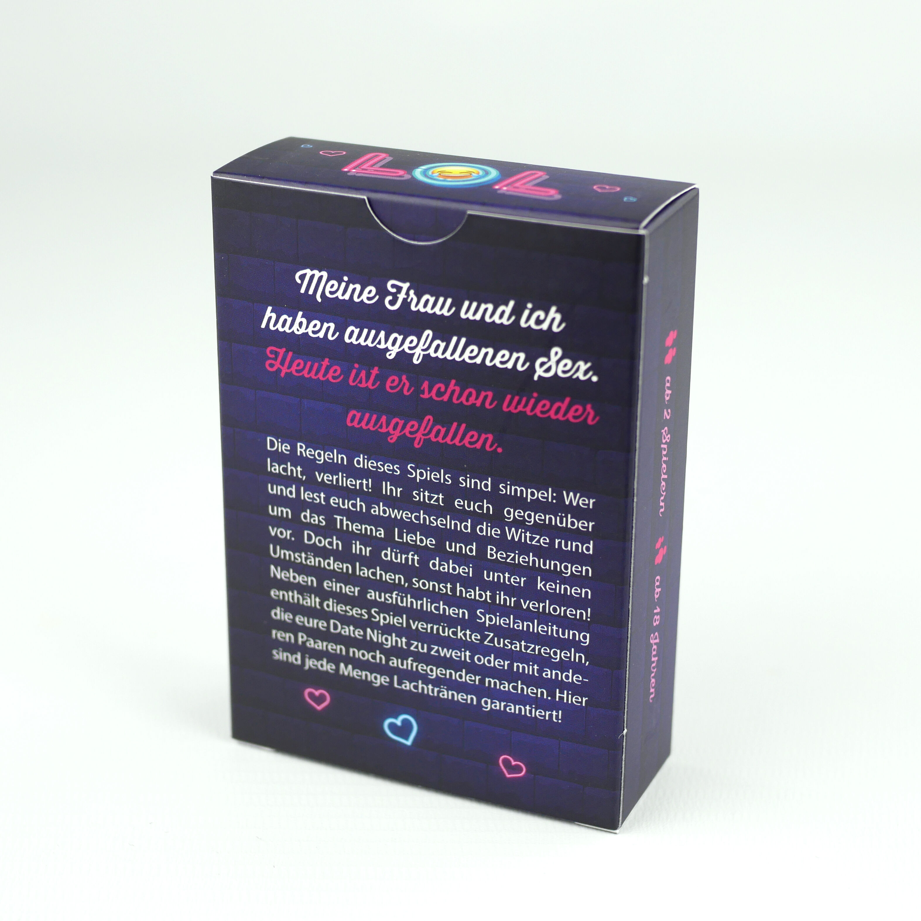 Meine Frau und ich haben ausgefallenen Sex. Heute ist er schon wieder ausgefallen. Die Regeln dieses Spiels sind simpel: Wer lacht, verliert! Ihr sitzt euch gegenüber und lest euch abwechselnd die Witze rund um das Thema Liebe und Beziehungen vor. Doch ihr dür...