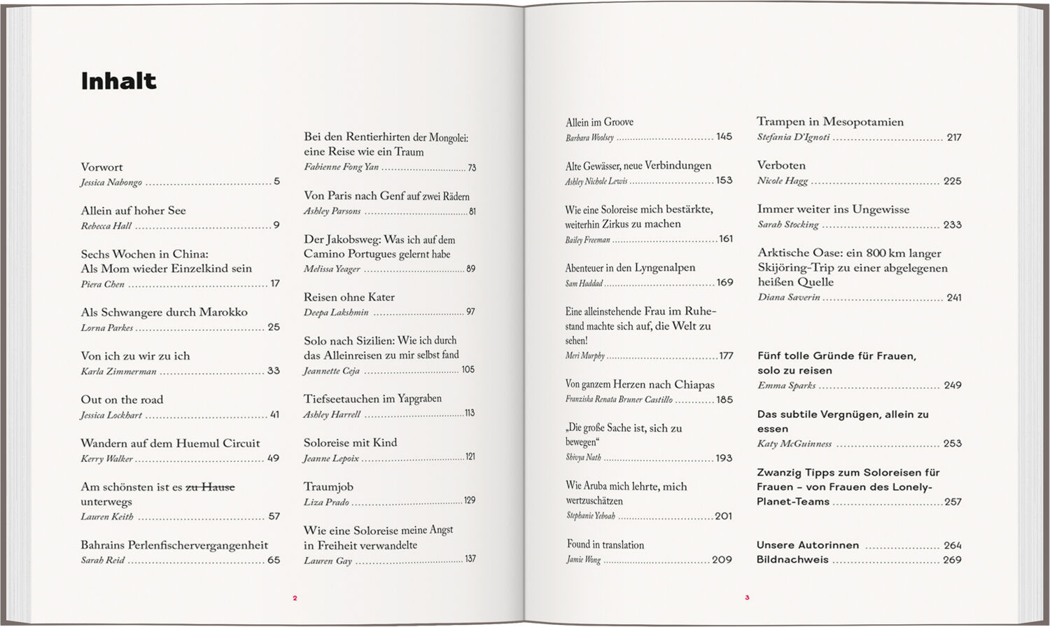 ALLEIN REISEN ist doch nichts für Frauen das galt vielleicht noch für unsere Mütter und Großmütter, aber damit ist längst Schluss! Lonely Planet hat 30 Frauen gebeten, über ihre Solo-Reisen zu berichten. Ob allein auf einem Containerschiff über den Atlantik, ...