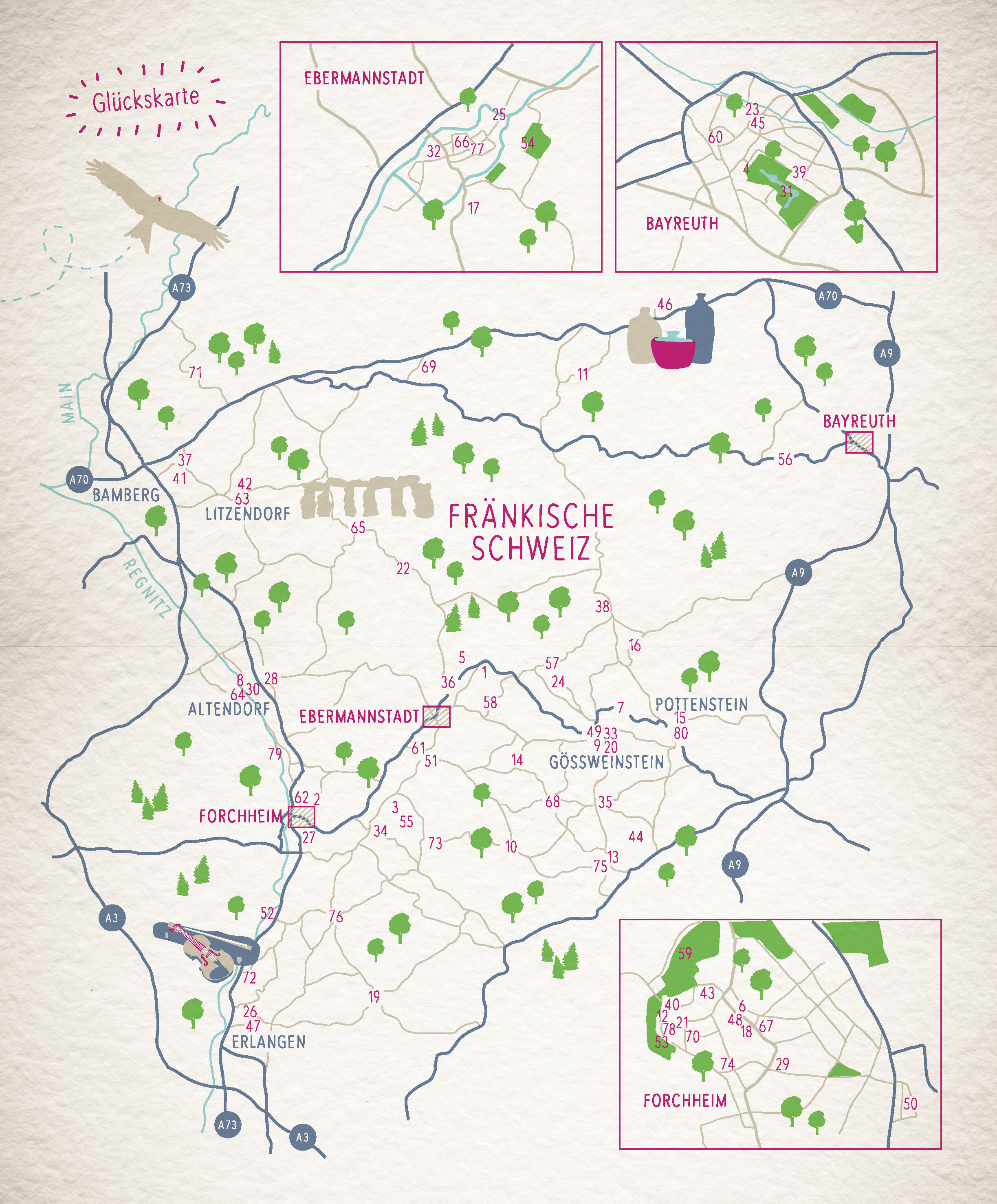 Geschmückte Osterbrunnen bewundern, geheimnisvolle Tropfsteinhöhlen erkunden, im Blütenmeer wandern oder unter dem Erzählbaum Geschichten lauschen: Mal aktiv, mal entschleunigt lädt die Fränkische Schweiz zu inspirierenden Entdeckungen ein. In herrlicher Natur...