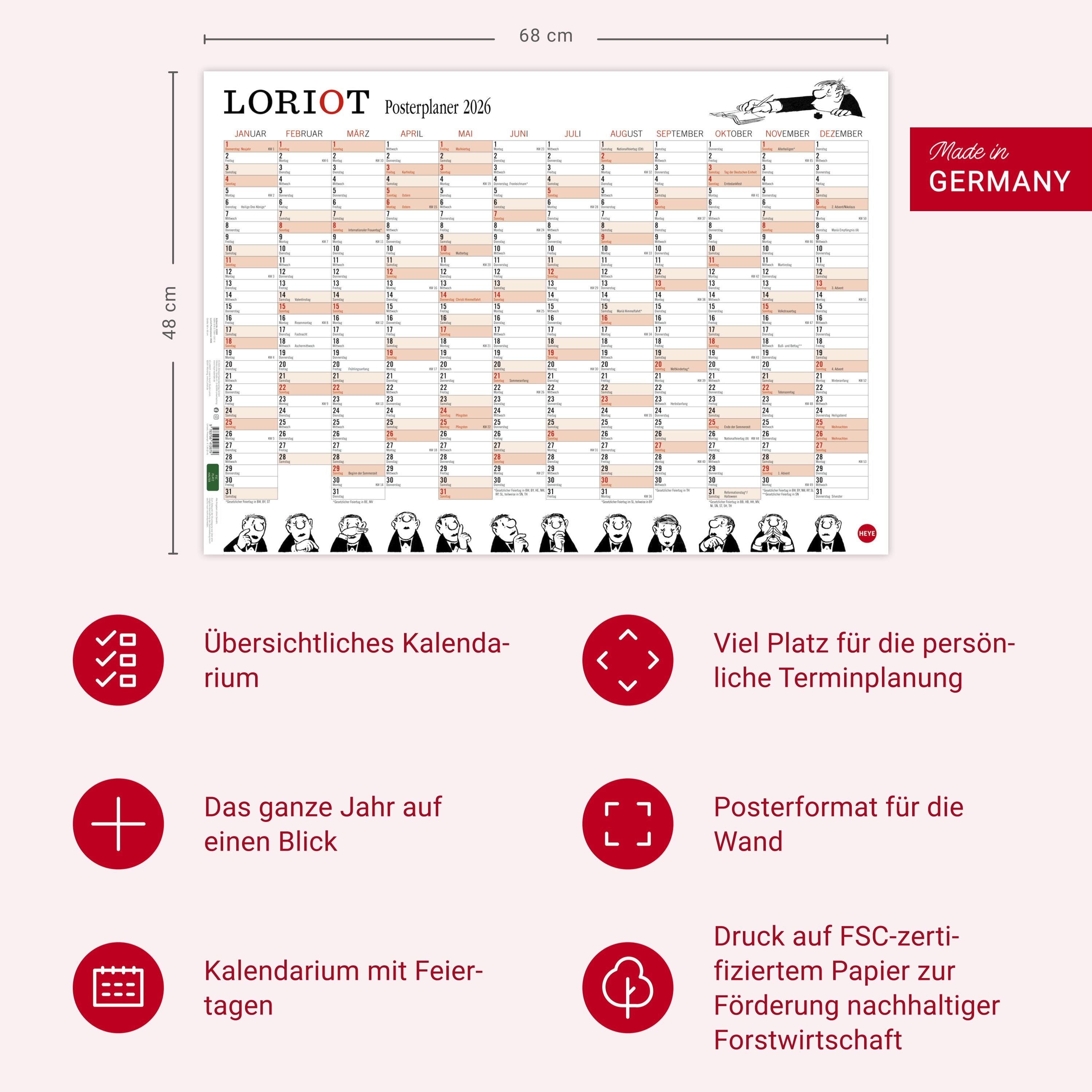 Ein Leben ohne Loriot ist möglich aber sinnlos: Der Loriot-Wandplaner (2026) ist da! - Schmunzelnd durchs Jahr mit Cartoons vom deutschen Altmeister des gepflegten Humors - hängt garantiert nicht schief: Jahresplaner 2026 mit Platz für alle wichtigen und unw...