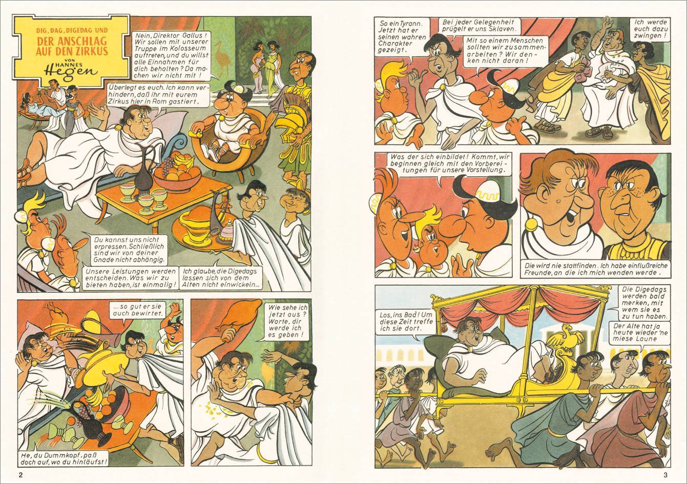 Ein Tornado schleudert das Zirkusschiff der Comichelden Dig, Dag und Digedag vor die Tore Roms. Ihr Auftritt im Kolosseum wird zu einem großen Erfolg, sogar der römische Kaiser ist begeistert. Doch der gewinnsüchtige Direktor des Kolosseums, dessen Pläne sie d...