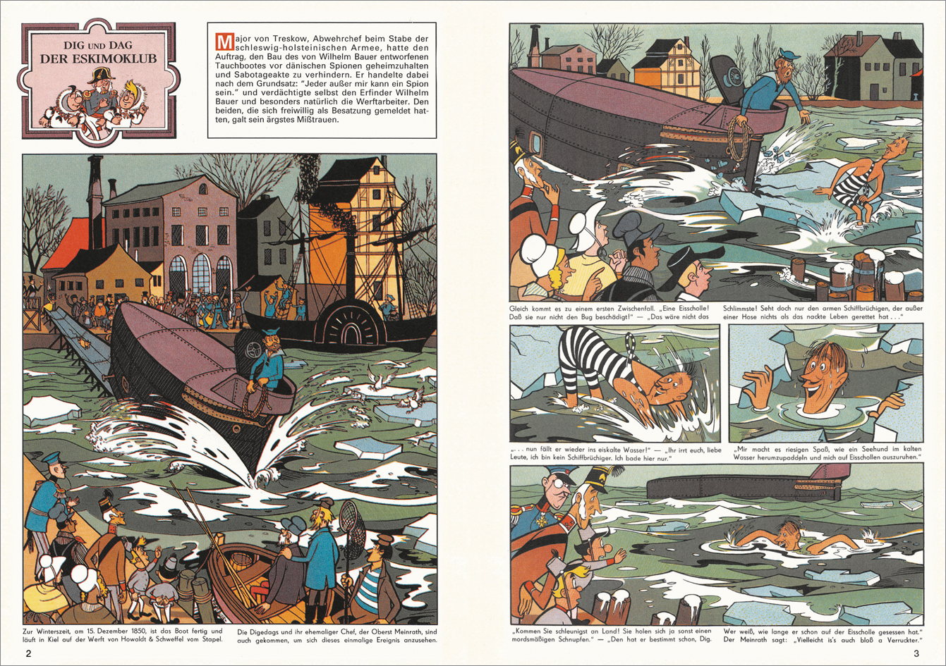 Als Eskimos verkleidet wollen die Digedags das von Wilhelm Bauer konstruierte Modell eines U-Boots vor Spionen schützen, doch es wird versenkt. Da für eine Bergung das Geld fehlt, begleiten sie Bauer nach England, wo dieser endlich seinen Traum verwirklichen w...
