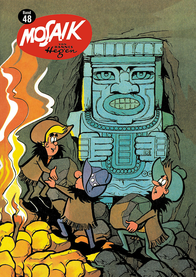 Die Digedags ahnen nicht, dass ihre Gegner inzwischen wieder frei und auch hinter dem Gold her sind. Der Erfinder versetzt durch den Einsatz seiner Dampforgel eine Büffelherde in Panik, die die Verfolger zunächst aufhält. Doch am Ende treffen sich alle auf der...