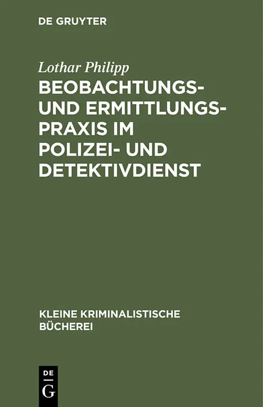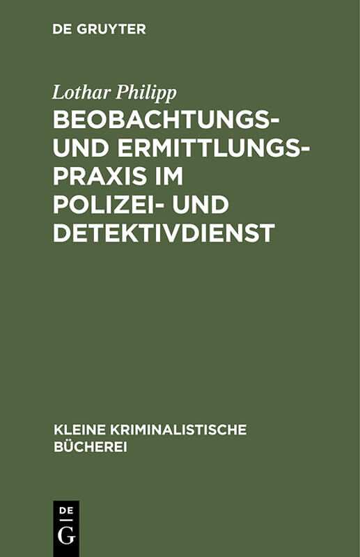 Keine ausführliche Beschreibung für "Beobachtungs- und Ermittlungspraxis im Polizei- und Detektivdienst" verfügbar. Frontmatter -- I. Vorwort -- Inhaltsverzeichnis -- II. Einleitung -- III. Ausbildung -- IV. Ausstattung -- V. Aufträge -- Anhang -- Sa...