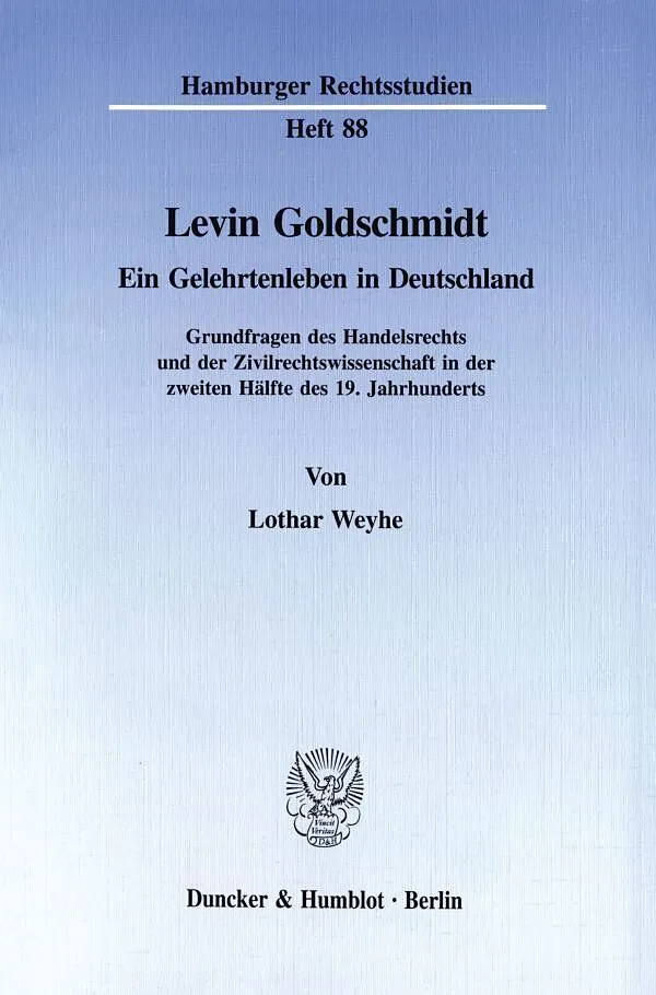 Zusammenfassung »Daß Levin Goldschmidt nicht nur einer der bedeutendsten Handelsrechtler des 19. Jahrhunderts, sondern der deutschen Rechtsgeschichte überhaupt ist, ebenso daß er zu den großen deutschen Juristen des 19. Jahrhunderts gehört, die maßgeblich das ...