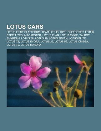 Quelle: Wikipedia. Seiten: 51. Kapitel: Lotus Elise Plattform, Team Lotus, Opel Speedster, Lotus Esprit, Tesla Roadster, Lotus Elan, Lotus Exige, Talbot Sunbeam, Lotus 49, Lotus 29, Lotus Seven, Lotus Elite, Lotus 72, Lotus Evora, Lotus 23, Lotus 56, Lotus Ome...