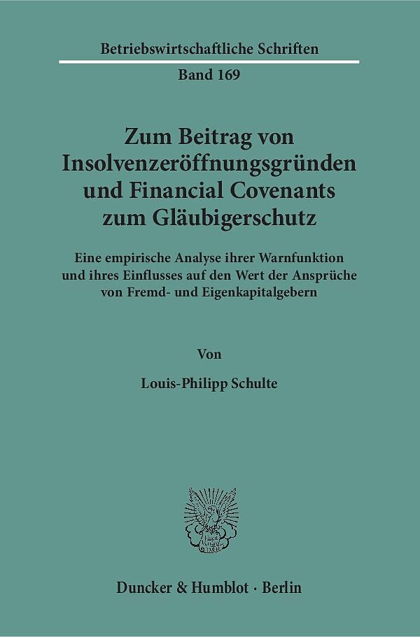 Der Bedarf Gläubiger zu schützen ergibt sich aus ihrer von Eigentümern abweichenden Rechtsstellung. Daher ist die Diskussion der Möglichkeiten, Gläubiger vor dem Zahlungsausfall eines Schuldners zu schützen, untrennbar mit der Kreditvergabe verbunden. Louis-Ph...