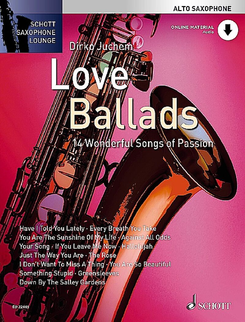 Nachschub für die Schott Saxophone Lounge: In der neuesten Ausgabe entführt Top-Arrangeur Dirko Juchem auf eine musikalische Reise durch Jahrzehnte der Popmusik. Gewohnt gekonnt verleiht er darin 14 unsterblichen Love-Songs wie Your Song, The Rose, You Are So ...