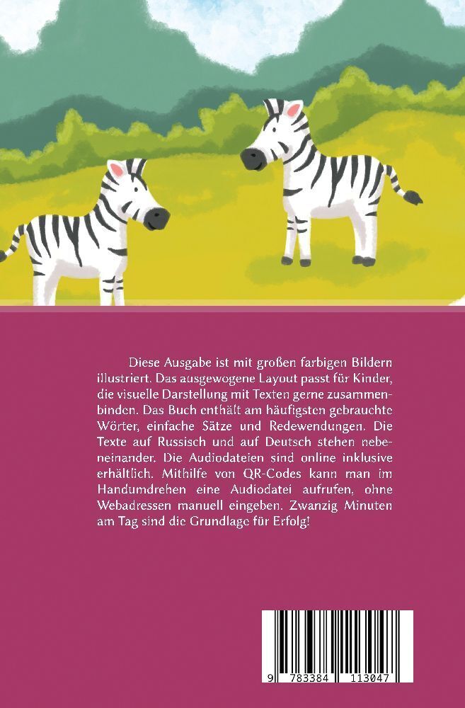 Diese Ausgabe ist mit großen farbigen Bildern illustriert. Das ausgewogene Layout passt für Kinder, die visuelle Darstellung mit Texten gerne zusammenbinden. Das Buch enthält am häufigsten gebrauchte Wörter, einfache Sätze und Redewendungen. Die Texte auf Russ...