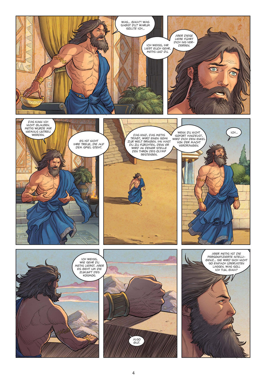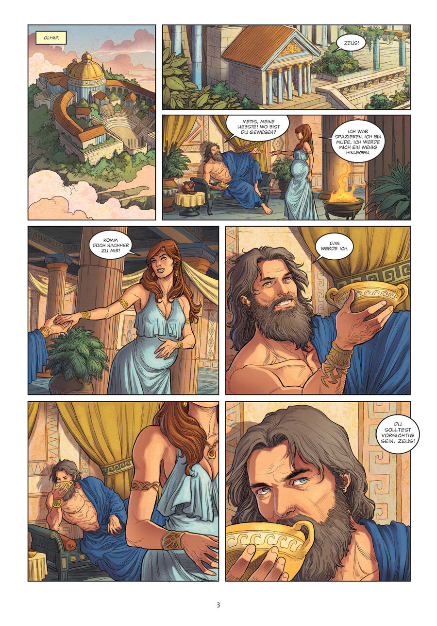 Ein unerträglicher Schmerz, der wie aus dem Nichts kam, plagt Göttervater Zeus. Die Schläge seines Herzens hallen bis in seine Schläfen, das Leid treibt ihn an den Rand des Wahnsinns. In seiner Verzweiflung wendet er sich an Hephaistos, damit dieser ihm den Sc...