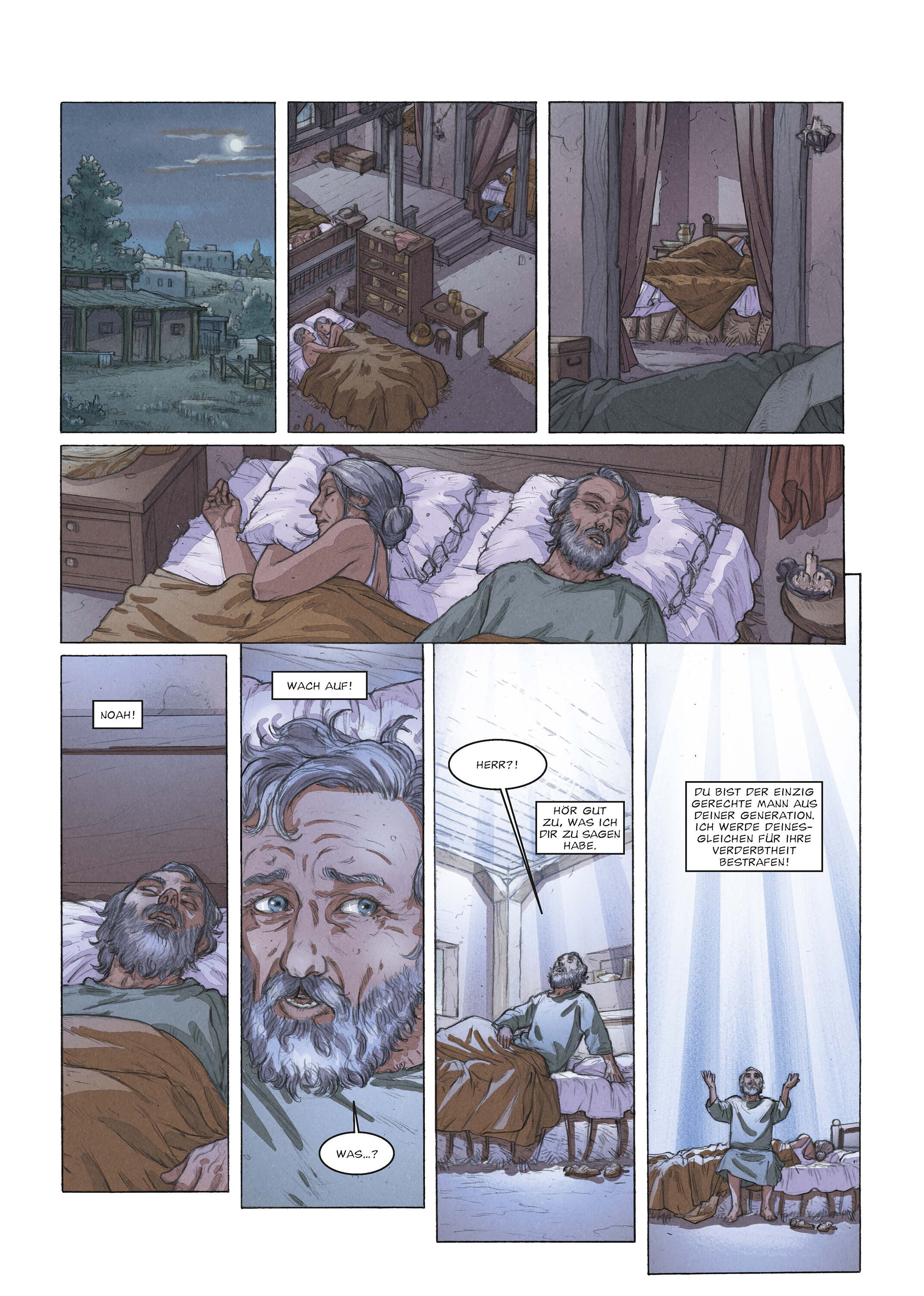 Inmitten der Nacht überkommt Noah eine göttliche Offenbarung: Um die Menschen zu bestrafen, die korrupt und grausam geworden sind, wird der Herr das Land überfluten und reinwaschen. Nicht endender Regen werden auf die Erde niedergehen, und Noahs Aufgabe wird e...