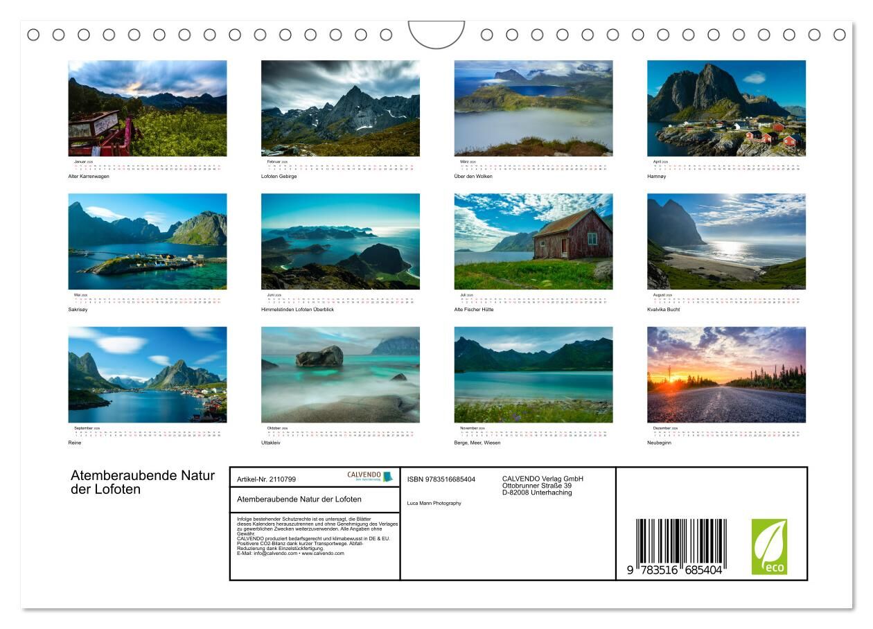 Dieser Kalender ist für die Skandinavien-Liebhaber, die auch in ihrem normalen Alltag einen Einblick in die skandinavische Natur haben möchten. Er bietet 12 Monate lang unterschiedliche Eindrücke der Lofoten und kann vielleicht den ein oder anderen dazu motivi...