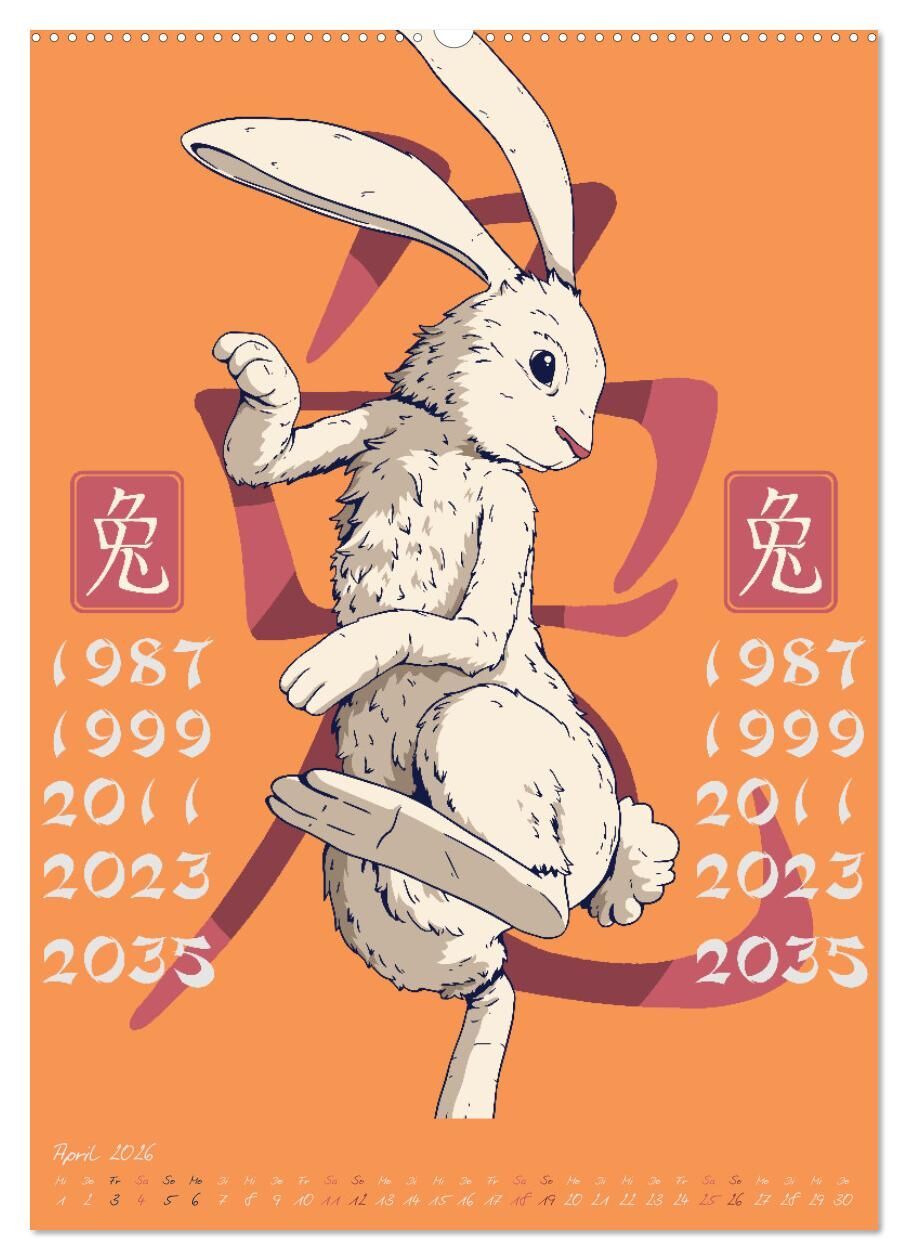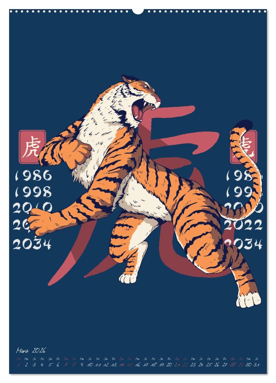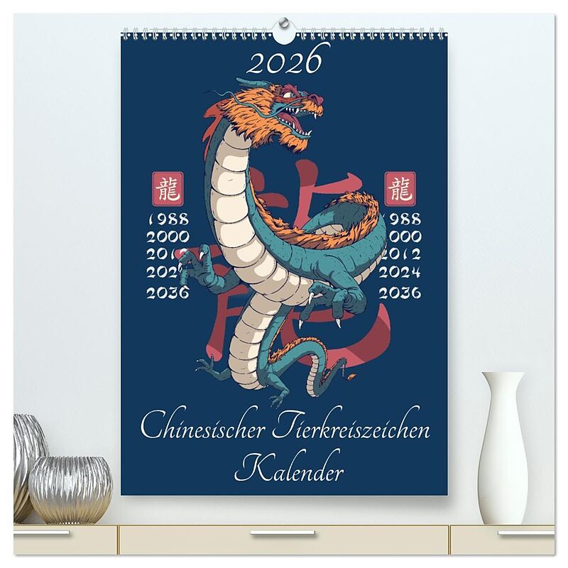 Chinesische Tierkreiszeichen (hochwertiger Premium Wandkalender 2026 DIN A2 hoch), Kunstdruck in Hochglanz