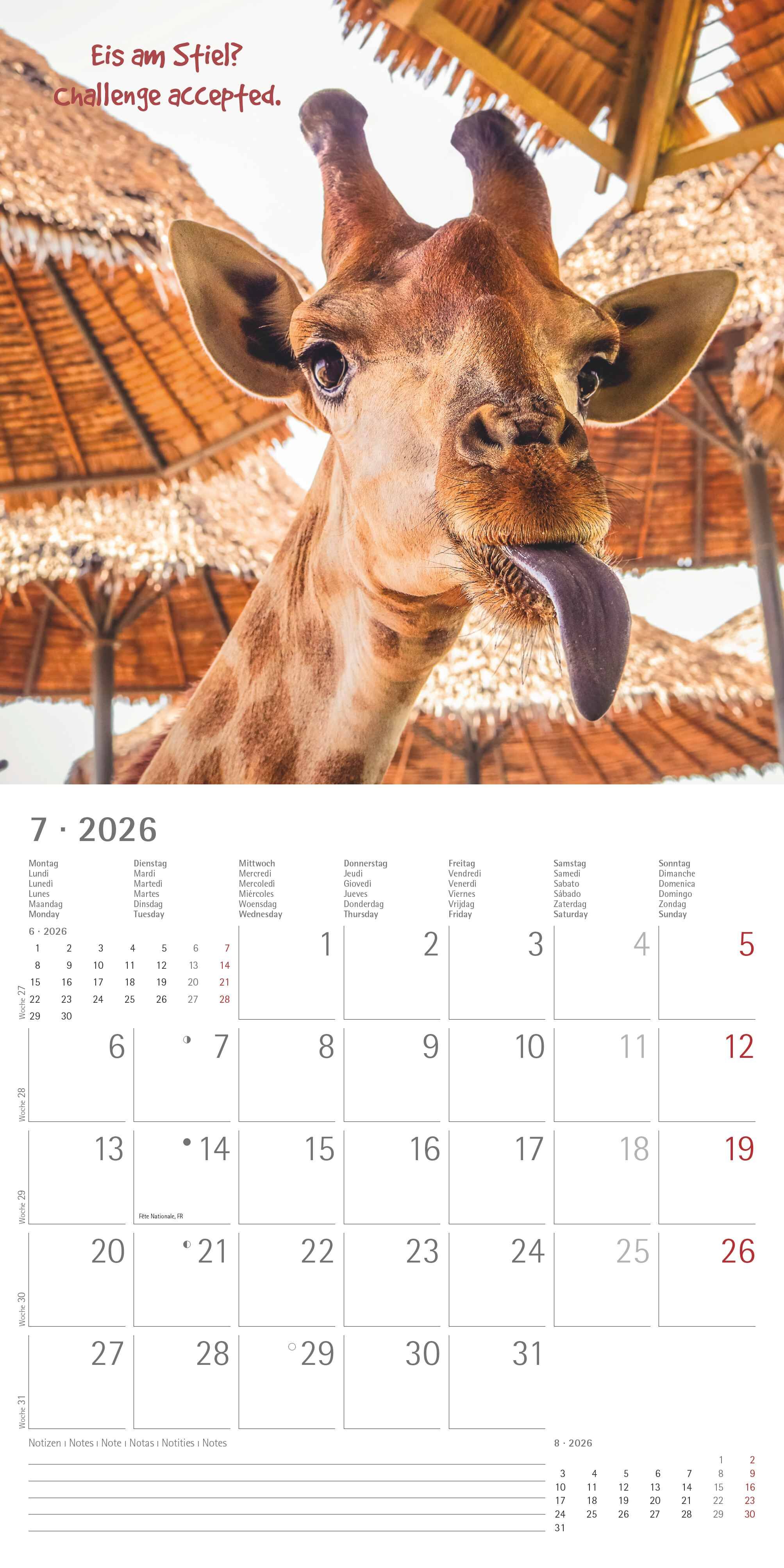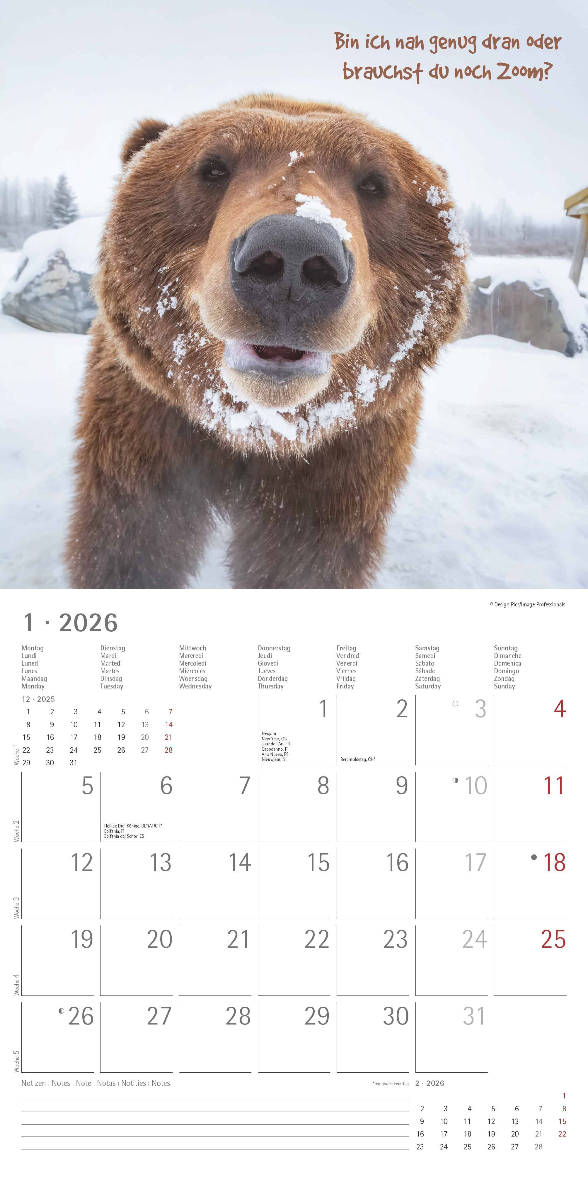 Starten Sie jeden Monat mit einem Lächeln mit dem Funny Animals Kalender 2026 von Alpha Edition. Dieser humorvolle Wandkalender kombiniert charmante Tierfotografien mit witzigen Sprüchen und sorgt so für tierische Unterhaltung das ganze Jahr über. Highlights:...